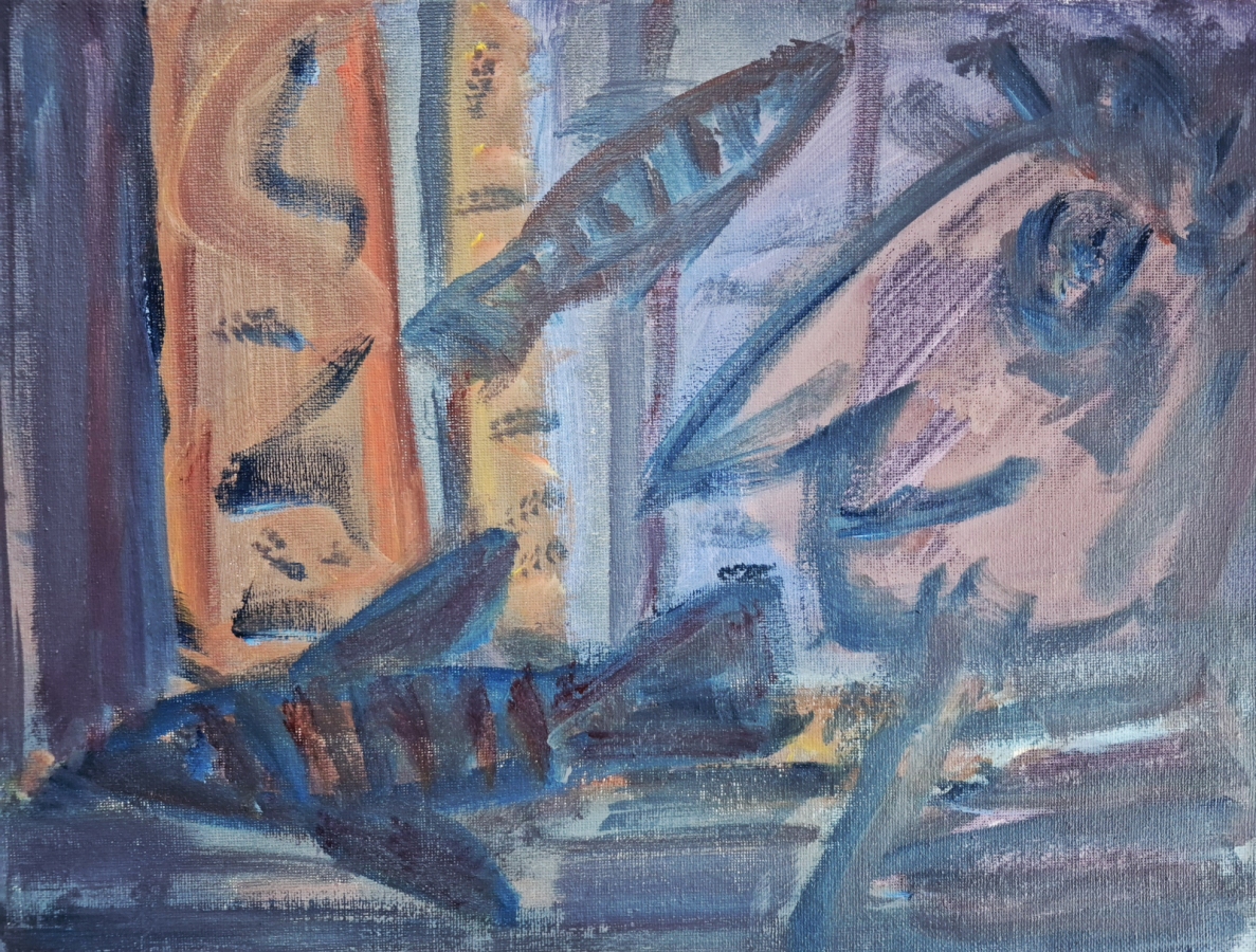obraz olejny na płótnie z cyklu WĘDROWCY, format 30 x 40 cm. WĘDROWCY to aktualnie najważniejszy, najnowszy cykl Kazimierz Klickiego — przede wszystkim duże obrazy na płótnie, najczęściej w formacie 150 × 120 cm, oraz formaty średniej wielkości i mniejsze. To malarskie spotkania z człowiekiem, naturą, pamięcią i tym, co nie do końca nazwane. Każdy z obrazów z tego cyklu, to moment zatrzymania się artysty i doświadczenie kontaktu ze sobą samym i ze Światem. Między rytmem, ciszą, strukturą i gestem. Wyraz wolności kreacji.