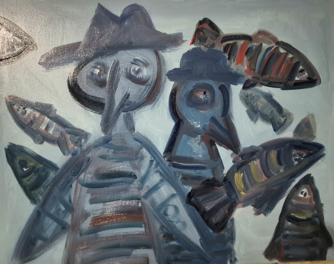 Obraz olejny z cyklu WĘDROWCY, format 30 x 40 cm. WĘDROWCY to aktualnie najważniejszy, najnowszy cykl Kazimierza Klickiego — przede wszystkim duże obrazy na płótnie, często w formacie 150 × 120 cm, a także mniejsze prace. To malarskie spotkania z człowiekiem, naturą, pamięcią i tym, co nie do końca nazwane. W tym malarstwie ważny jest gest i sam akt malowania. Istotna jest relacja z podświadomością i stan "tu i teraz" autora. Każdy obraz to kolejny etap drogi, prowadzącej między rytmem, ciszą, strukturą i gestem.