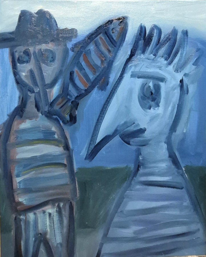 Ekspresyjny obraz na płótnie z cyklu WĘDROWCY, format 40 x 50 cm WĘDROWCY to aktualnie najważniejszy, najnowszy cykl Kazimierz Klickiego — przede wszystkim duże obrazy na płótnie, najczęściej w formacie 150 × 120 cm, oraz formaty średniej wielkości i mniejsze. To malarskie spotkania z człowiekiem, naturą, pamięcią i tym, co nie do końca nazwane. Każdy z obrazów z tego cyklu, to moment zatrzymania się artysty i doświadczenie kontaktu ze sobą samym i ze Światem. Między rytmem, ciszą, strukturą i gestem. Wyraz wolności kreacji.