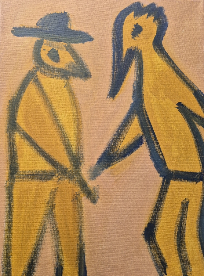 Obraz olejny na płótnie z cyklu WĘDROWCY, format 30 x 40 cm. WĘDROWCY to aktualnie najważniejszy, najnowszy cykl Kazimierz Klickiego — przede wszystkim duże obrazy na płótnie, najczęściej w formacie 150 × 120 cm, oraz formaty śrdniej wielkości i mniejsze. To malarskie spotkania z człowiekiem, naturą, pamięcią i tym, co nie do końca nazwane. Każdy z obrazów z tego cyklu, to moment zatrzymania się artysty i doświadczenie kontaktu ze sobą samym i ze Światem. Między rytmem, ciszą, strukturą i gestem. Wyraz wolności kreacji.