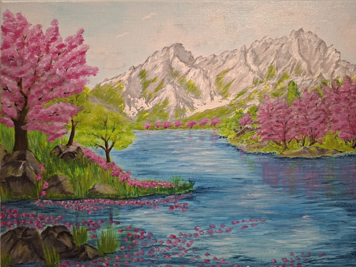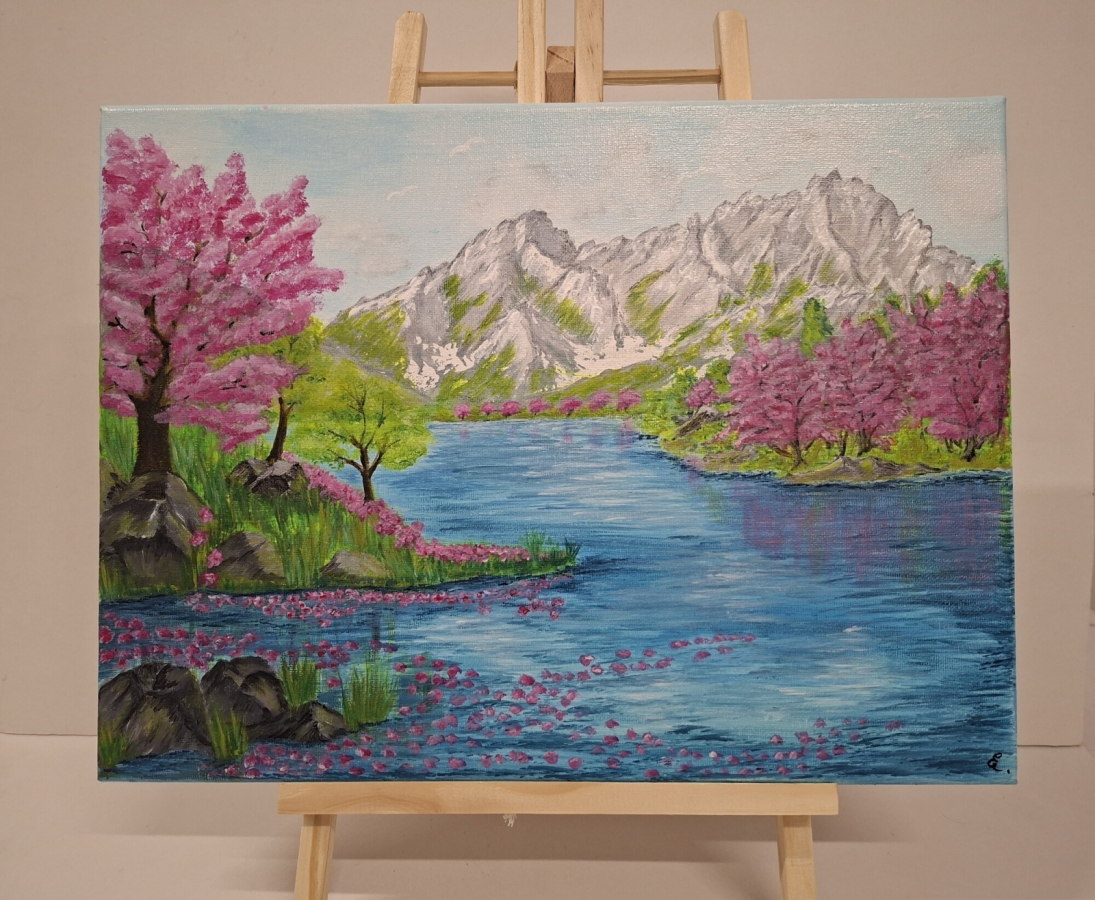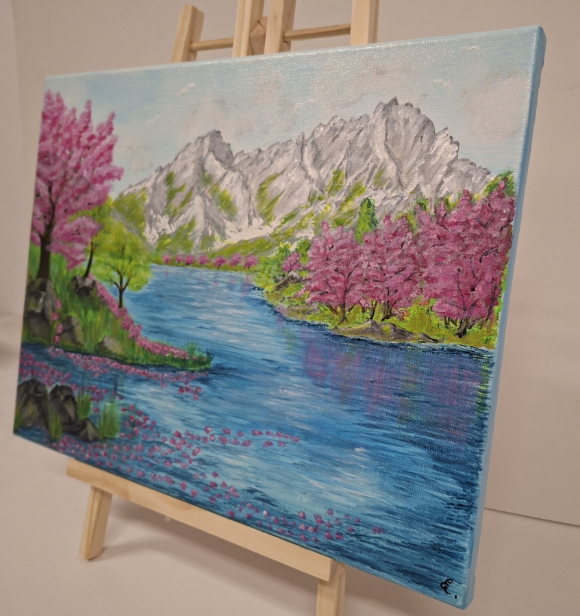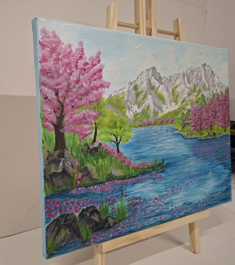 W tęsknocie z wiosną każdego dnia szukamy potwierdzenia w naturze, że jest już blisko. W końcu nadchodzi i czaruje nas swoimi kolorami. Jasne odcienie zieleni i różowe kwiaty to jej nieodłączny symbol. Wiosenny klimat obrazu daje poczucie świeżości, lżejszego oddechu, a kolorowe wiosenne kwiaty i drzewa dają oczom cieszyć się tą chwilą. Obraz malowany farbami akrylowymi Zabezpieczony werniksem.