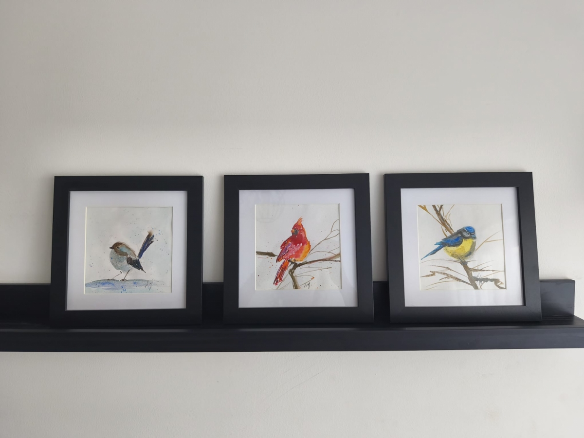 Witam, ptak Wróbel malowany farbami akwarelowymi, delikatny obraz nadaje się do każdego mieszkania. Mam kilka ptaków w podobnym kształcie. Zapraszam serdecznie