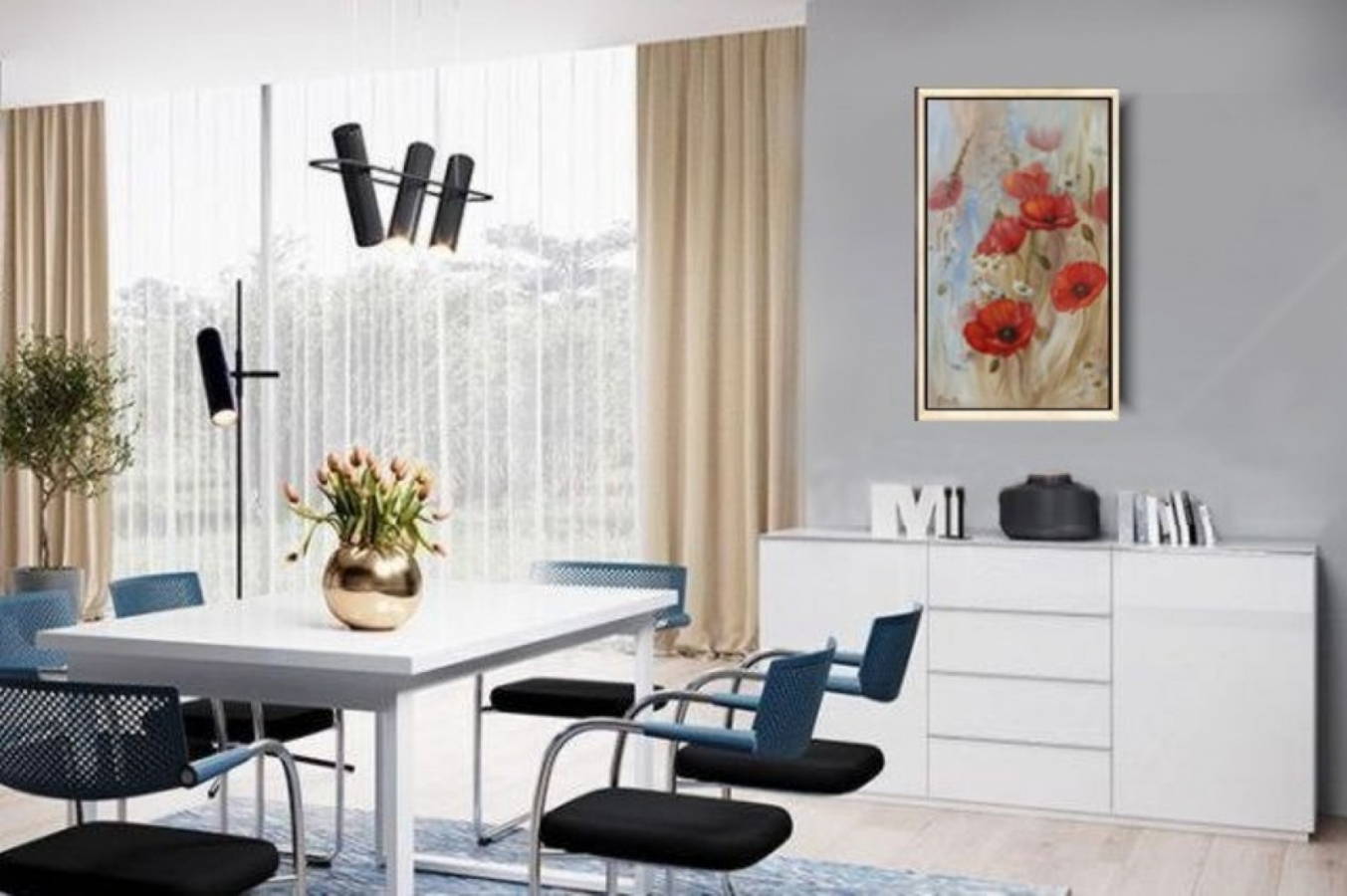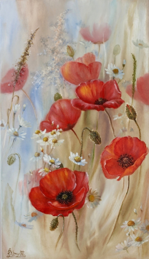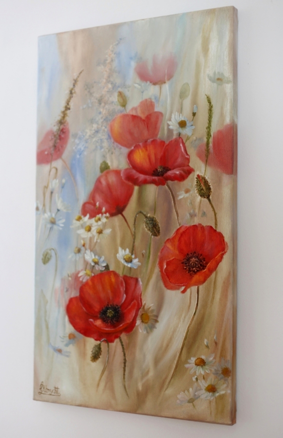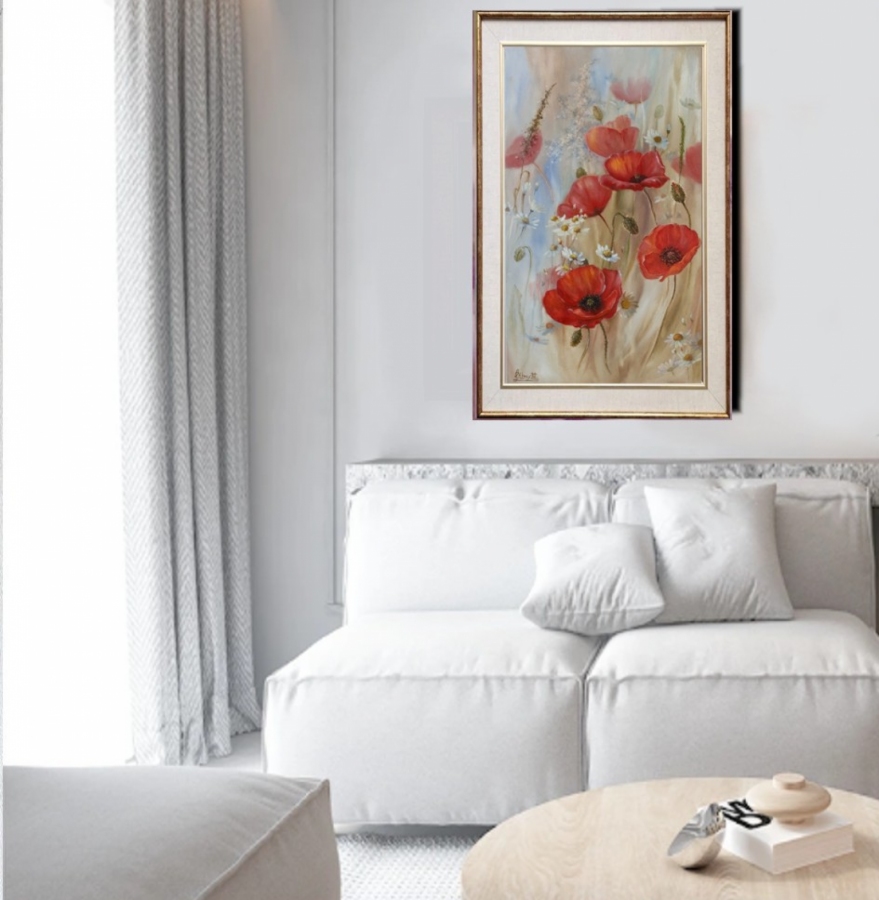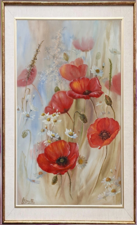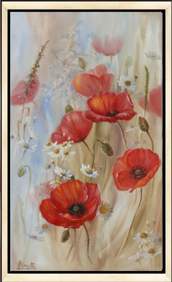 Obraz namalowany został ręcznie w technice olejnej na płótnie bawełnianym naciągniętym na blejtram (drewnianą ramę). Zabezpieczony został satynowym werniksem (nie błyszczy). Sygnowany. Wymiary: 70X40 cm Autor: Lidia Olbrycht Na życzenie wystawiany jest certyfikat autorski. Boki obrazu są zamalowane zgodnie z jego kolorystyką, co powoduje, że równie dobrze prezentuje się bez ramy. Ramy pokazane na zdjęciach są tylko propozycją ewentualnej oprawy. Gotowy do zawieszenia (z tyłu przytwierdzona metalowa zawieszka "krokodylek") Przesyłka kurierska krajowa ubezpieczona. Istnieje możliwość namalowania podobnego obrazu w dowolnym rozmiarze lub jego wydruk artystyczny Giclee Print (w tym celu proszę o kontakt). Kolory na monitorze mogą nieznacznie różnić się od kolorów obrazu w rzeczywistości - zależy to od typu i ustawień monitora.