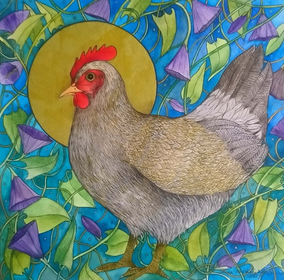 Akwarela, tusz, akryl na papierze fabrianno, kolejny z serii ptasiej