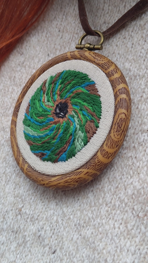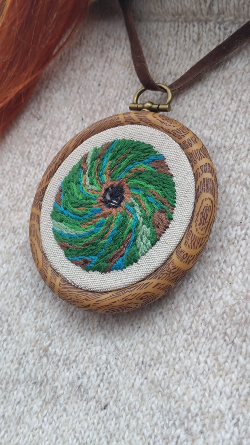 Breloko-wisior to idealny dodatek dla tych, którzy chcą widzieć więcej. Haftowany ręcznie, z czułością, przez nieidealne dłonie. Mieszanka bawełnianych i poliestrowych mulin przechodzi przez bawełniane podłoże. Tył wykończony filcem. Rzemień nie jest elementem produktu. Dodatkowe informacje: - zawieszka jest wyciągana, więc może zostać połknięta przez dziecko. - nie zbliżać do ognia, nie moczyć. - nie używać, jeśli występuje alergia na którykolwiek z materiałów. Użytkowanie: Produktu można używać jako ozdoby, również jako dodatku do ubrania, biżuterii lub osobnej dekoracji. Czyszczenie i pielęgnacja: Czyścić delikatnie wilgotną szmatką, bez użycia detergentów; Unikać kontaktu z wodą, perfumami i kosmetykami; Przechowywać w suchym miejscu, najlepiej w woreczku materiałowym; Nie prać w pralce ani nie moczyć. Przechowywanie: Przechowywać w pozycji płaskiej, aby uniknąć deformacji haftu; Chronić przed promieniami słonecznymi, które mogą powodować blaknięcie kolorów Uwagi: Produkt delikatny — nie zaleca się noszenia podczas intensywnych aktywności fizycznych; Nie należy umieszczać produktu w ogniu, wrażliwy na temperaturę; Haft może ulec uszkodzeniu przy silnym tarciu lub zaczepieniu.