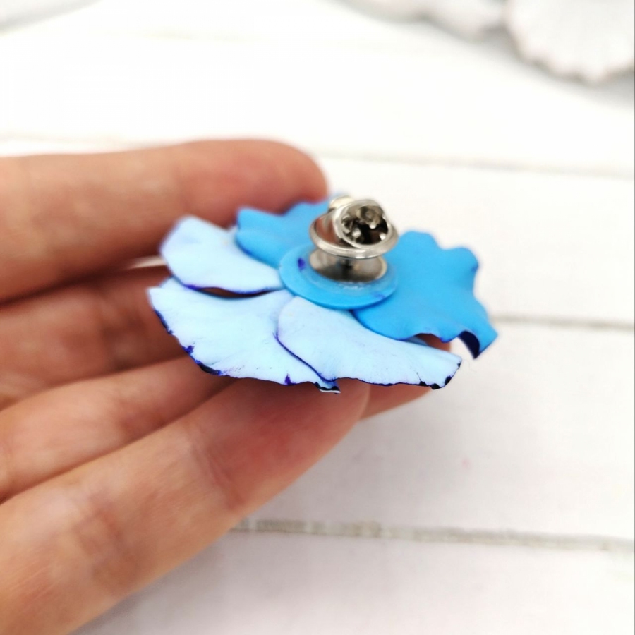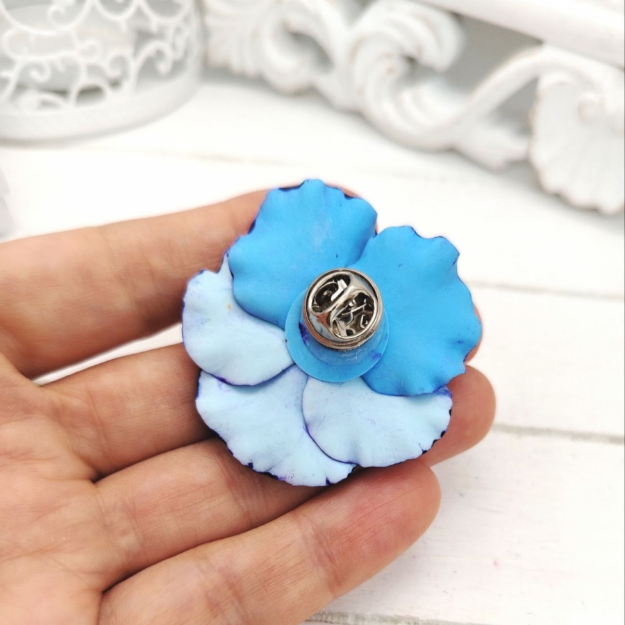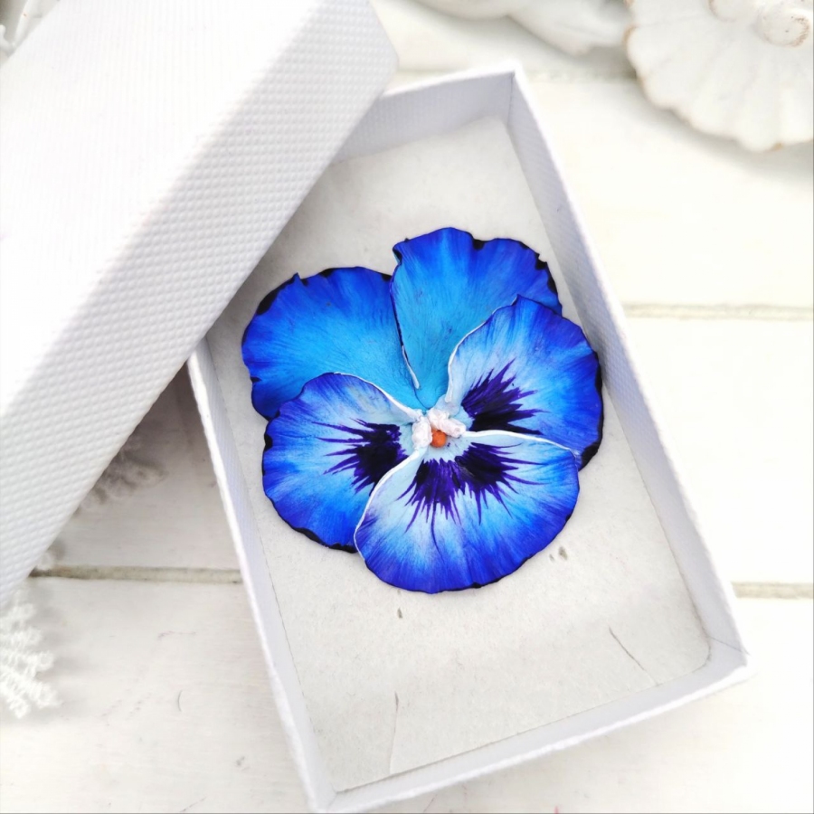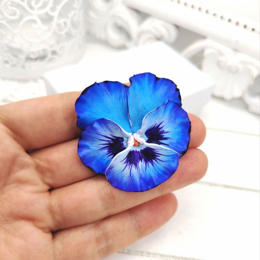 Delikatna broszka w formie kwiatka bratka w odcieniach błękitu i niebieskiego. Każdy element został starannie wymodelowany z gliny polimerowej, ręcznie pomalowany i zabezpieczony wodoodpornym lakierem, dzięki czemu broszka zachowuje swój urok na długo. Średnica broszki to 4 cm – idealny rozmiar, by stała się subtelnym, a zarazem wyrazistym akcentem. Wyposażona w bezpieczną zatyczkę, może zdobić płaszcz, marynarkę, palto, a także torebkę czy plecak. To romantyczny dodatek inspirowany urokiem natury – mały kwiat, który ożywi każdą stylizację i przyciągnie spojrzenia.