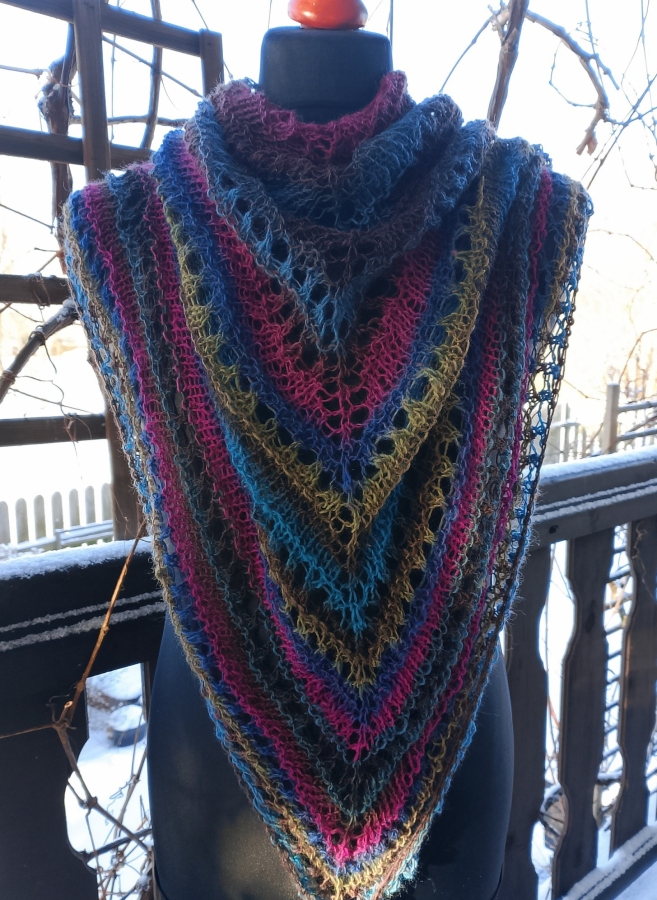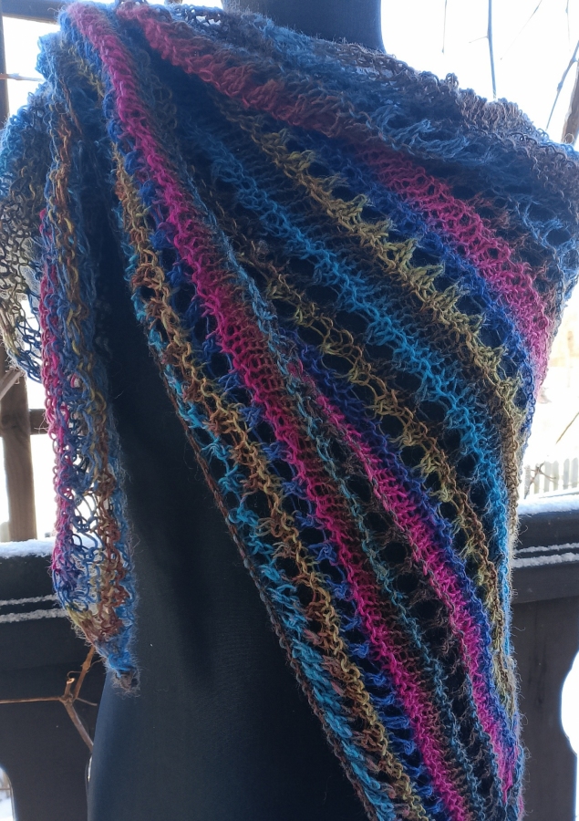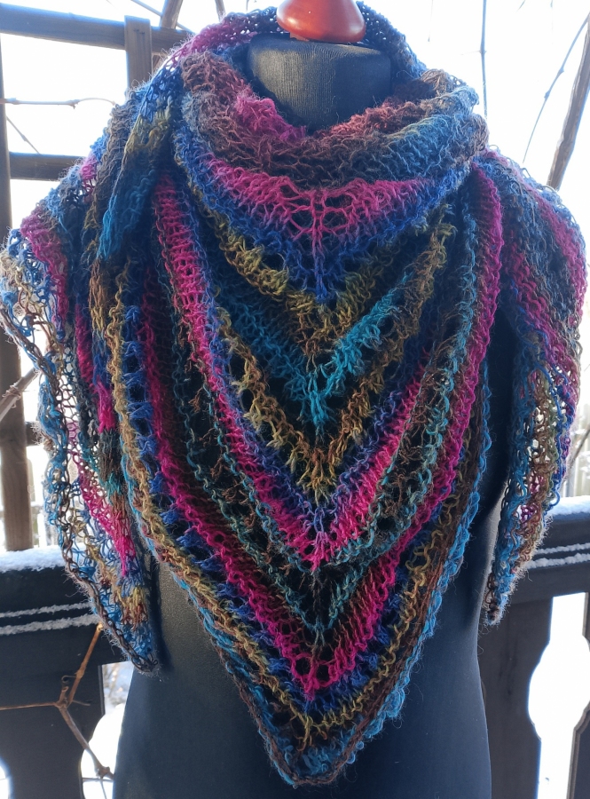 Ażurowa chusta cieniowana, na drutach