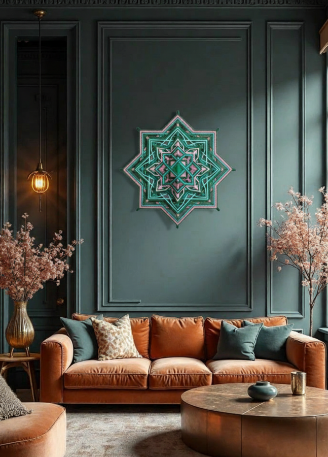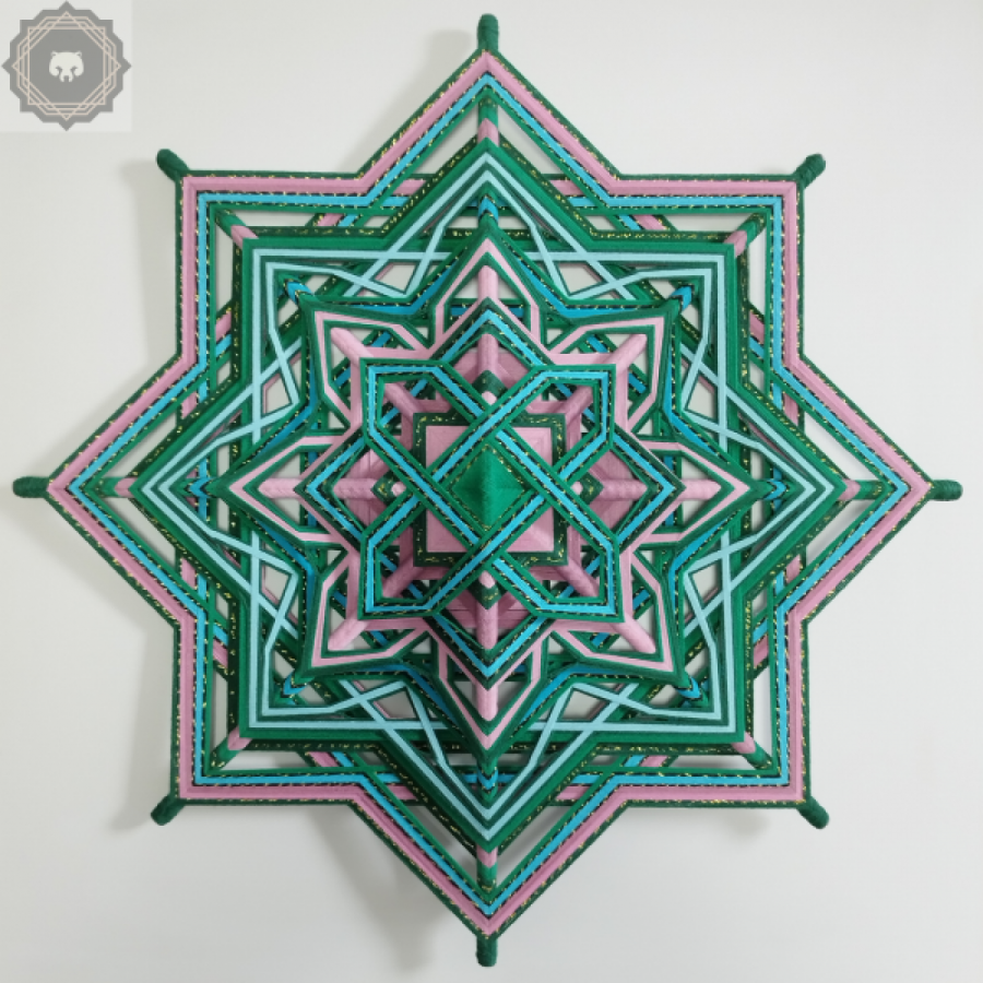 Mandala „Żywioły – DRZEWA I WODY” - Odkryj Spokój Zatrzymaj się na chwilę i spójrz w samo serce tej Mandali. To nie jest zwykła dekoracja ścienna. To tkana opowieść o spotkaniu dwóch potężnych sił natury: stabilności wiekowych drzew i nieuchwytnej płynności wody. Stworzona przez Rob-ART"Manualwork" , Mandala ta jest mostem między tradycyjnym rzemiosłem a nowoczesną potrzebą harmonii w domowym zaciszu. Co wniesie do Twojego życia? Wizualną Medytację: Skomplikowany, geometryczny układ nici prowadzi wzrok do środka, pomagając wyciszyć gonitwę myśli po trudnym dniu. Energię Natury: Połączenie głębokiej zieleni z odświeżającym błękitem działa kojąco na układ nerwowy. To jak kawałek lasu i jeziora zamknięty w geometrycznej formie. Unikatowość: W świecie masowej produkcji, ta Mandala jest manifestem autentyczności. Każdy splot to dowód cierpliwości i pasji ludzkich rąk. Detale, które zachwycają: Efekt Głębi: Dzięki misternej technice Ojo de Dios, Mandala posiada strukturę 3D, która zmienia się wraz z kątem padania światła. Szczypta Magii: Subtelne, lśniące nitki wplecione w zielone i niebieskie pasma sprawiają, że dzieło delikatnie mieni się, przypominając rosę na liściach lub słońce odbite w tafli wody. Dla kogo jest to dzieło? Dla poszukiwaczy piękna, które ma znaczenie. Dla tych, którzy chcą, aby ich wnętrza mówiły o miłości do natury i spokoju ducha.
