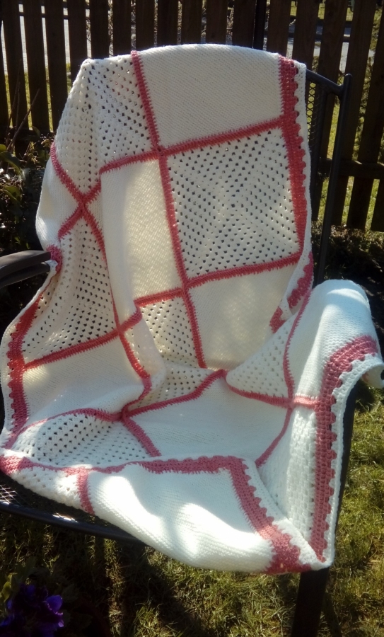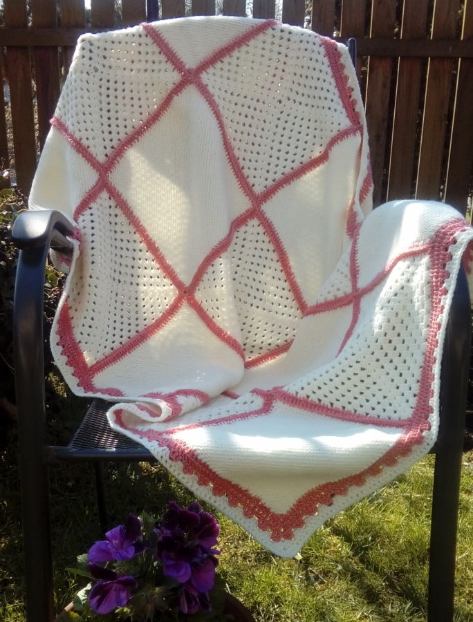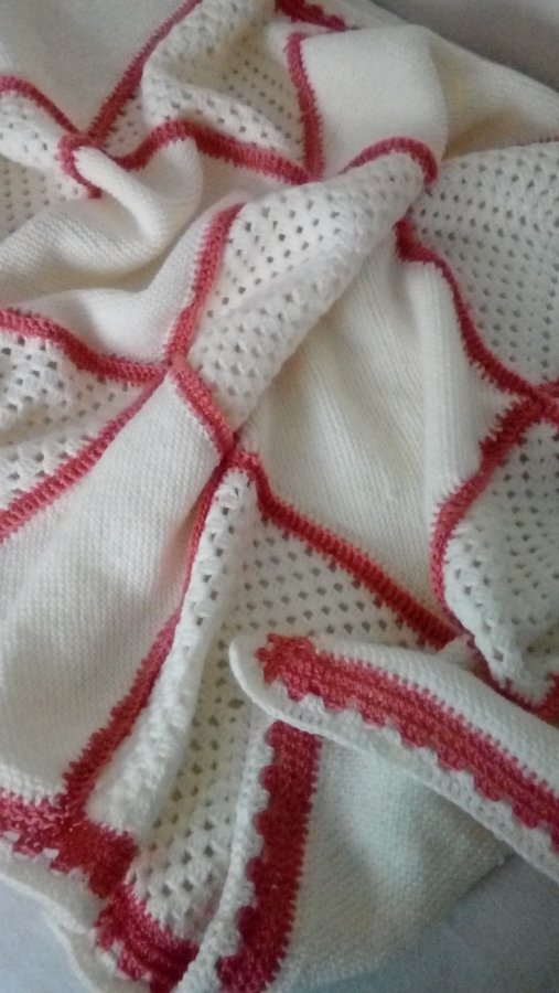 Narzuta wykonana ręcznie z kwadratów (połowa kwadratów wykonana gęstym ściegiem na drutach, połowa na szydełku). Wymiary 140 cm x 85 cm, kolory: kremowy i brzoskwiniowy. Wykonanie jej wymagało wielu godzin pracy i cierpliwości, w efekcie czego powstała niepowtarzalna, wyjątkowa kompozycja. Narzuta jest unikatowa, powstała wyłącznie w jednym egzemplarzu. Użyto delikatnej, bardzo dobrej jakościowej włóczki akrylowej. Dzięki starannemu wykonaniu narzuta jest dwustronna. Z powodzeniem może zostać użyta również jako ciepły kocyk, pled lub rekwizyt do sesji foto. Idealna na oryginalny a jednocześnie praktyczny prezent. Gotowa do wysyłki.