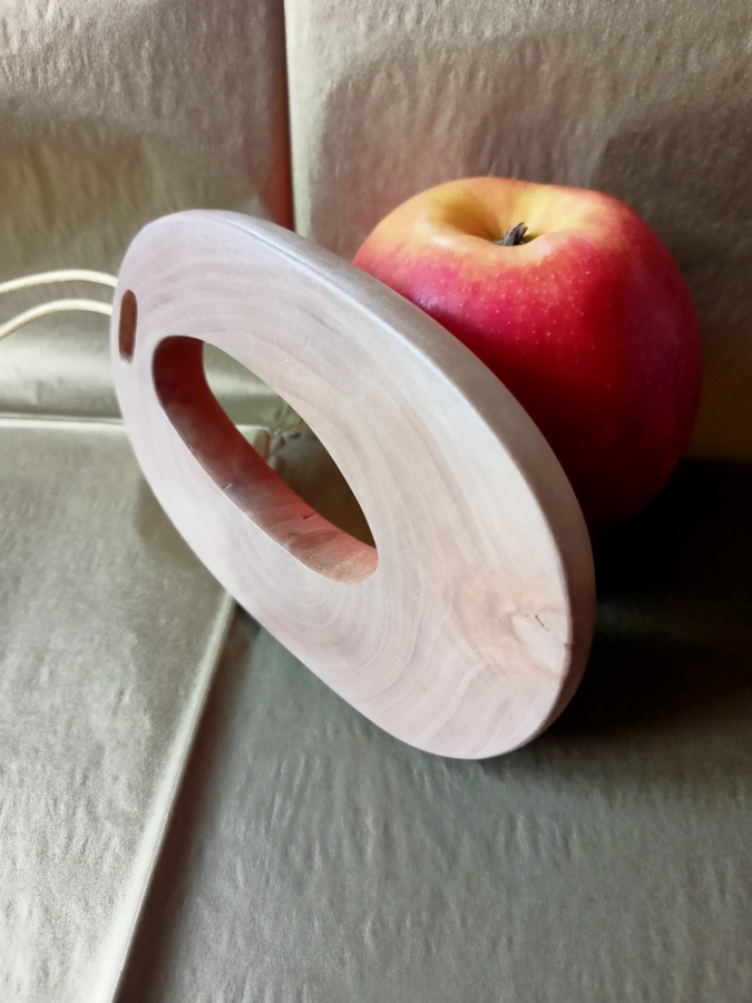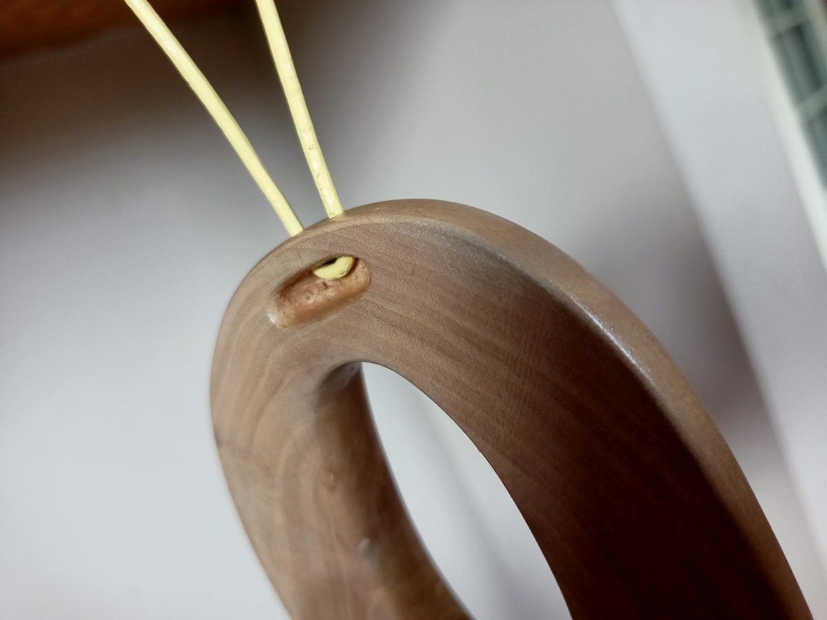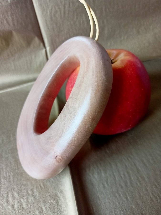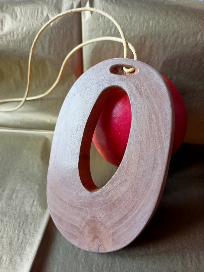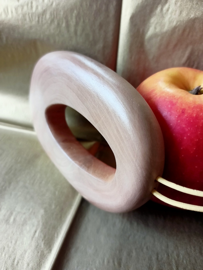 Unikatowy, minimalistyczny naszyjnik eko wykonany z gałęzi gruszy rosnącej na miedzy podlaskich pól, zwalonej przez wichurę. Wykonany ręcznie. Przepięknie zarysowane słoje wymusiły prostą formę. Natura jest największym artystą. Rzemień barwiony do wiązania.