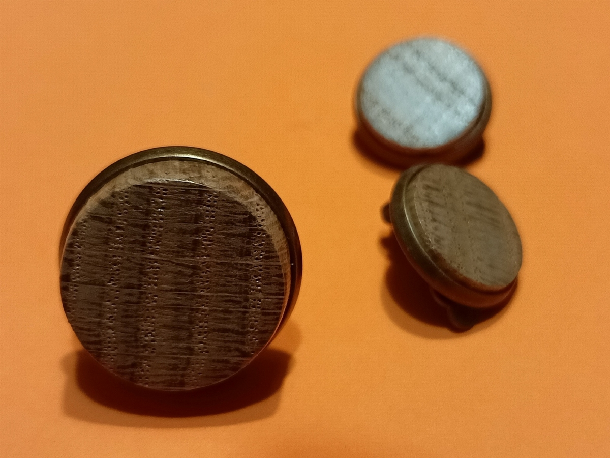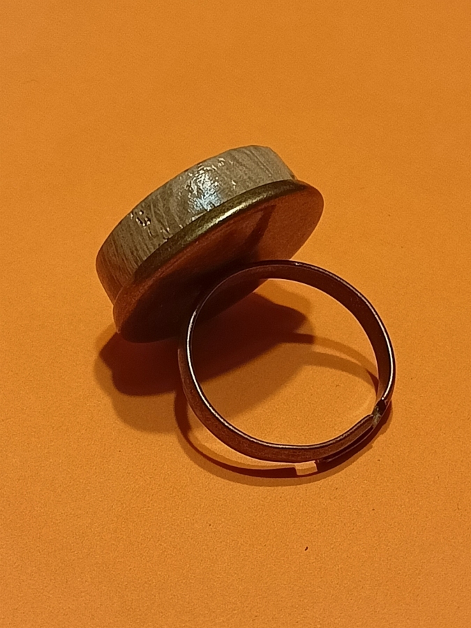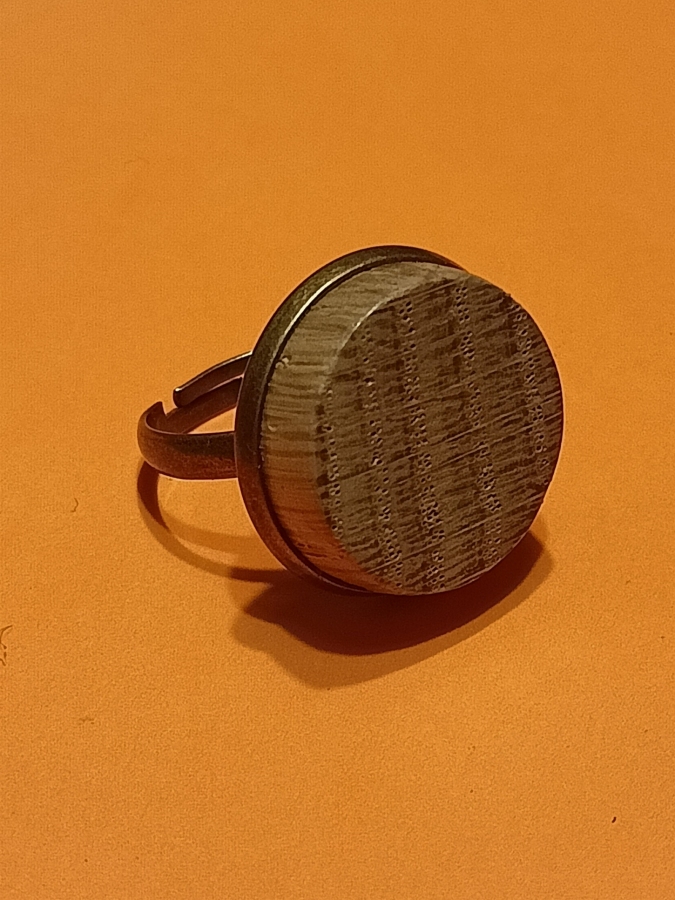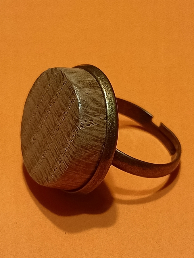 Wyjątkowy unikatowy minimalistyczny pierścionek ze starego dębu osadzonego w metalowej regulowanej bazie w kolorze starego złota. Regulowany. Wykonany ręcznie. Bardzo efektowny, również w zestawie z klipsami (patrz foto) także do kupienia. Średnica oczka: 2 cm; wysokość oczka: 0,5 cm