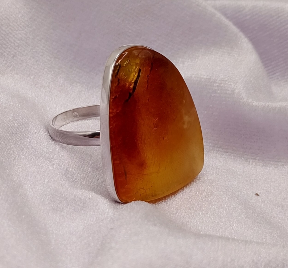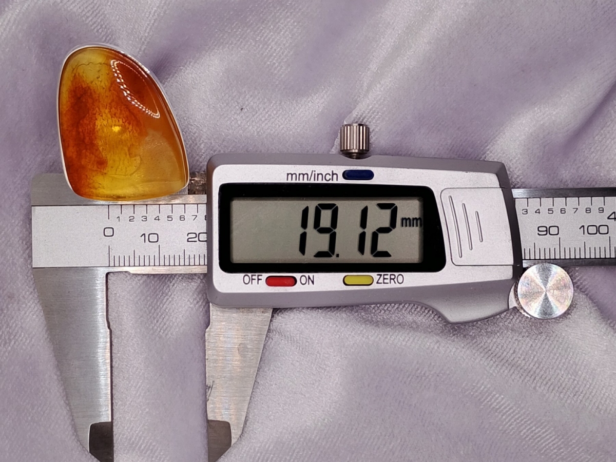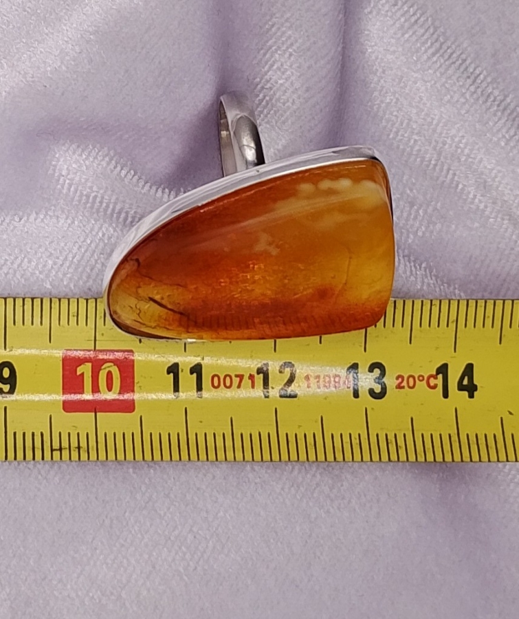 Pierścionek srebrny pr.925 z bursztynem , ( na życzenie za darmo mogę przeciąć obrączkę i ponownie wypolerować, robiąc regulowany rozmiar by pasował na każdy palec)(zdjęcia mogą różnić się od oryginału odcieniem) ostatnie zdjecie z suwmiarką, pokazuje średnicę wewnętrzną obrączki (19,12mm).