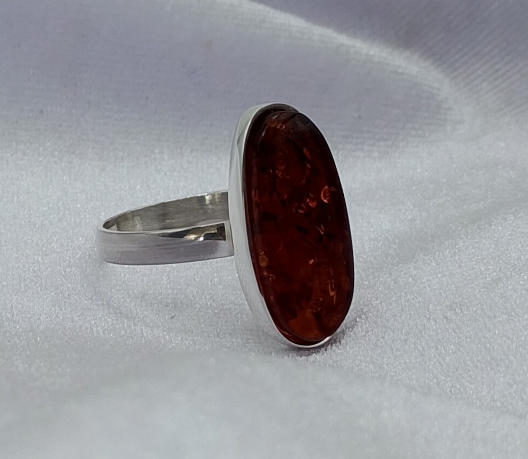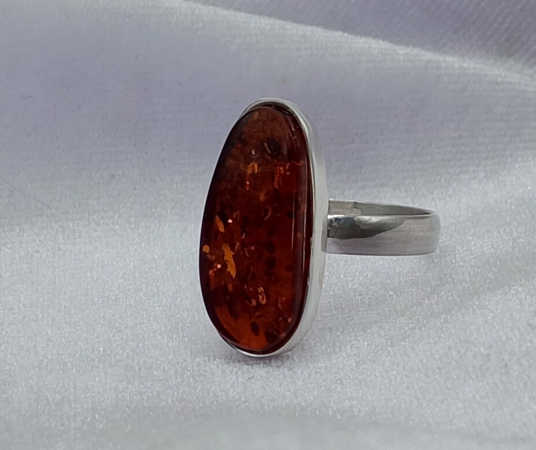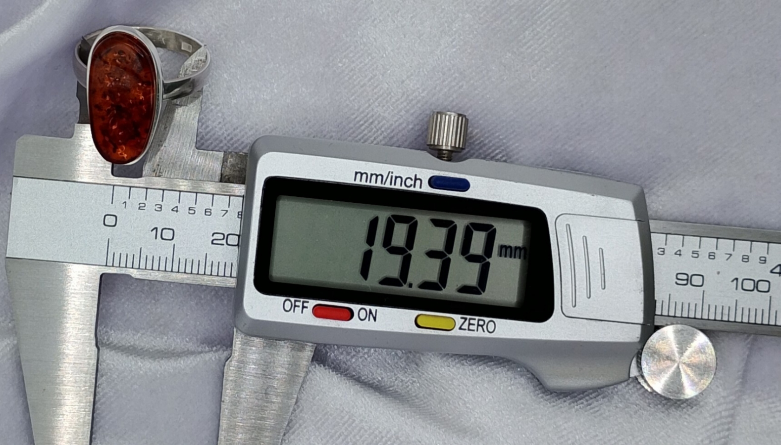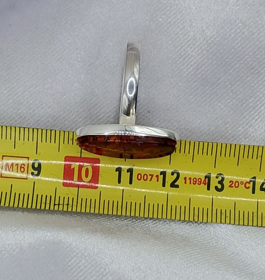 Pierścionek srebrny pr.925 z bursztynem , ( na życzenie za darmo mogę przeciąć obrączkę i ponownie wypolerować, robiąc regulowany rozmiar by pasował na każdy palec)(zdjęcia mogą różnić się od oryginału odcieniem) ostatnie zdjecie z suwmiarką, pokazuje średnicę wewnętrzną obrączki. Rozmiar/Średnica wew. (mm) 21/19,39