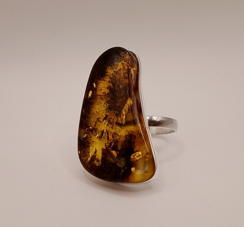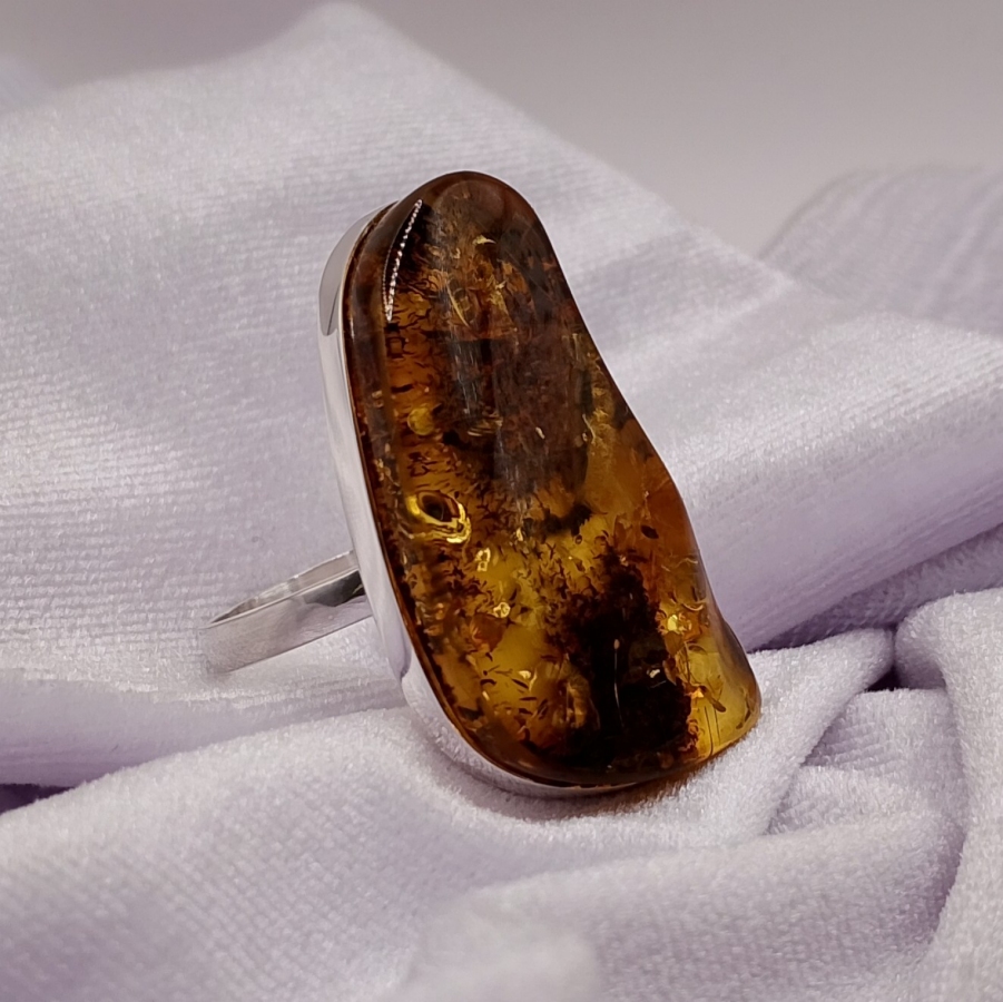 Pierścionek srebrny pr.925 z bursztynem , ( na życzenie za darmo mogę przeciąć obrączkę i ponownie wypolerować, robiąc regulowany rozmiar by pasował na każdy palec)(zdjęcia mogą różnić się od oryginału odcieniem) ostatnie zdjecie z suwmiarką, pokazuje średnicę wewnętrzną obrączki. Rozmiar/Średnica wew. (mm) 23/20,19