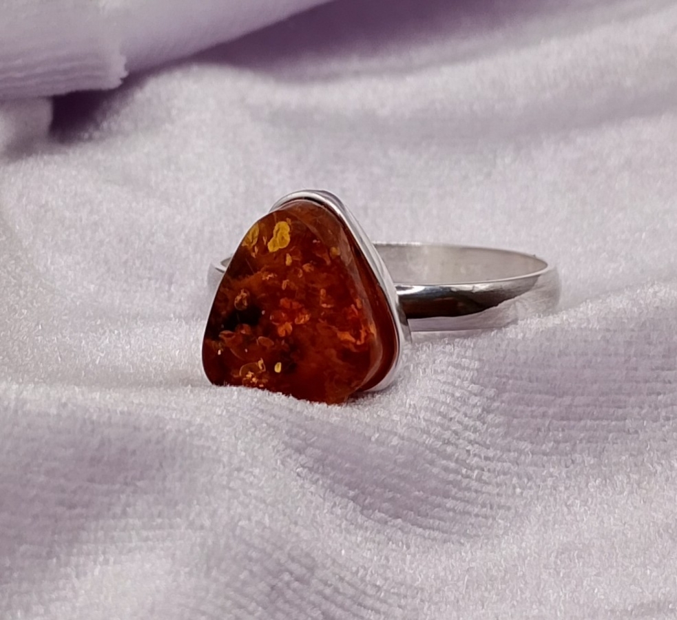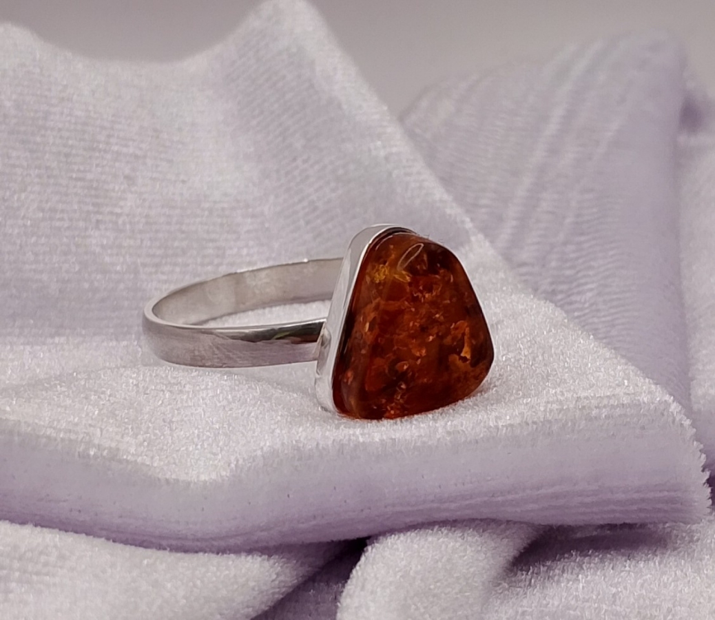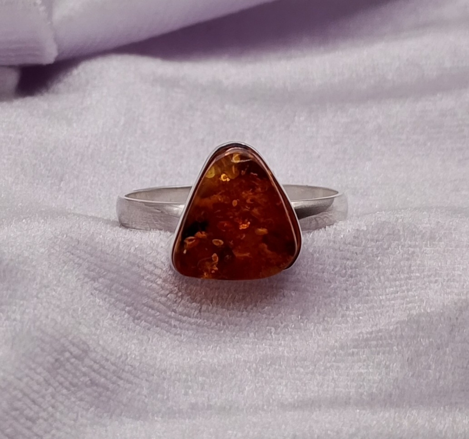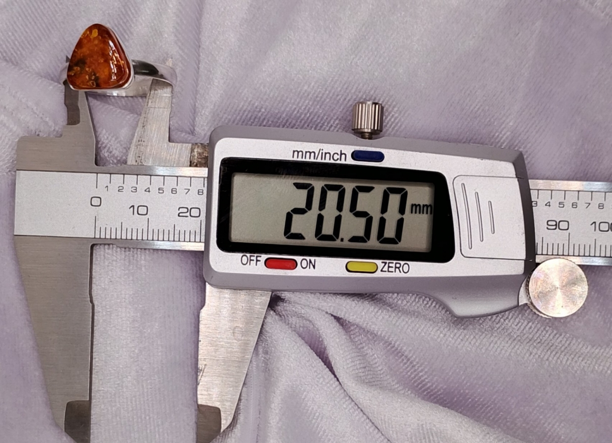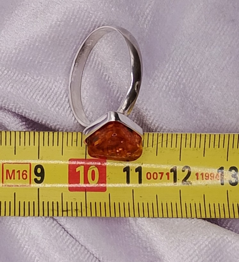 Pierścionek srebrny pr.925 z bursztynem , ( na życzenie za darmo mogę przeciąć obrączkę i ponownie wypolerować, robiąc regulowany rozmiar by pasował na każdy palec)(zdjęcia mogą różnić się od oryginału odcieniem) ostatnie zdjecie z suwmiarką, pokazuje średnicę wewnętrzną obrączki. Rozmiar/Średnica wew. (mm) 24/20,50
