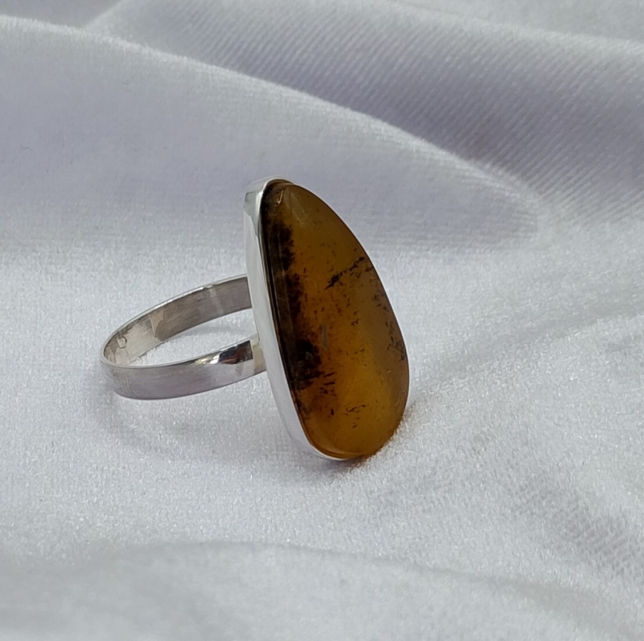 Pierścionek srebrny pr.925 z bursztynem , ( na życzenie za darmo mogę przeciąć obrączkę i ponownie wypolerować, robiąc regulowany rozmiar by pasował na każdy palec)(zdjęcia mogą różnić się od oryginału odcieniem) ostatnie zdjecie z suwmiarką, pokazuje średnicę wewnętrzną obrączki. Rozmiar/Średnica wew. (mm) 25/20,89