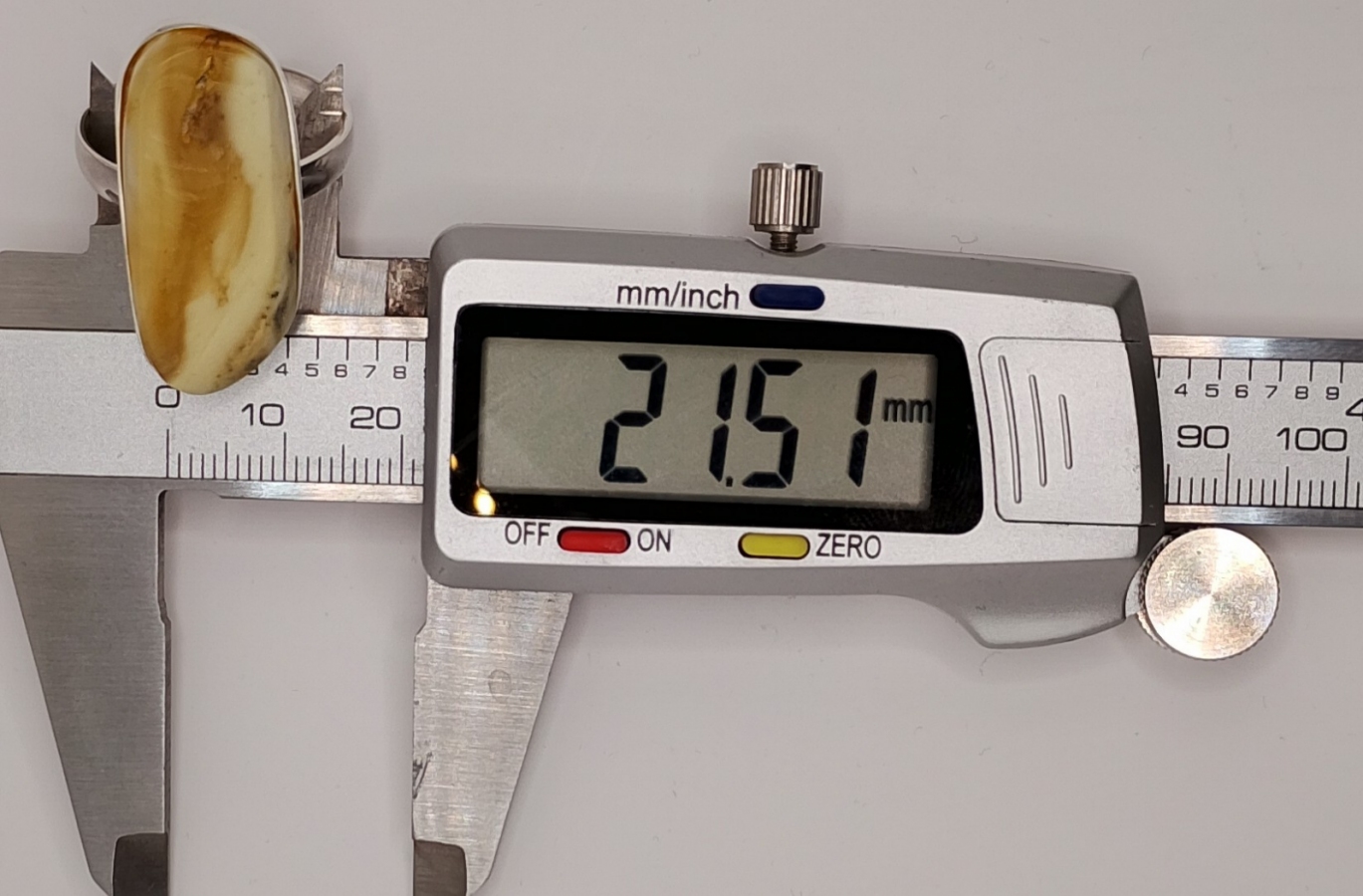 Pierścionek srebrny pr.925 z bursztynem , ( na życzenie za darmo mogę przeciąć obrączkę i ponownie wypolerować, robiąc regulowany rozmiar by pasował na każdy palec)(zdjęcia mogą różnić się od oryginału odcieniem) ostatnie zdjecie z suwmiarką, pokazuje średnicę wewnętrzną obrączki. Rozmiar/Średnica wew. (mm) 27/21,51