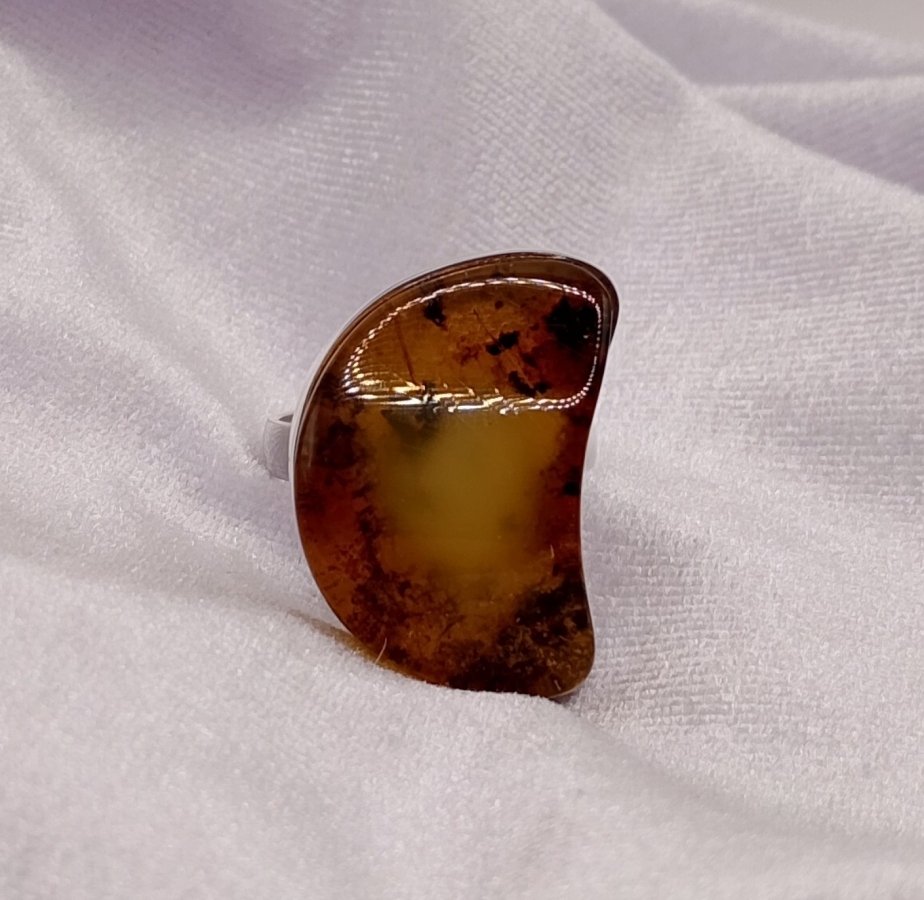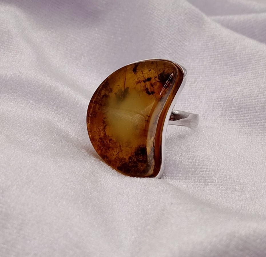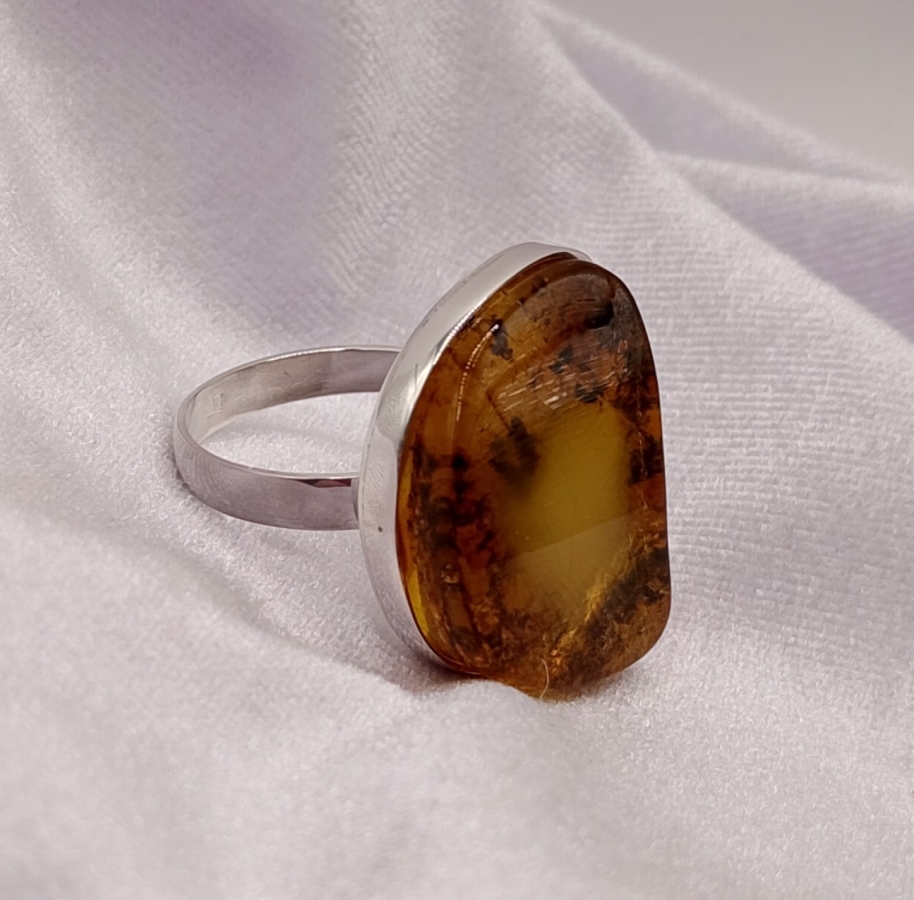Pierścionek srebrny pr.925 z bursztynem , ( na życzenie za darmo mogę przeciąć obrączkę i ponownie wypolerować, robiąc regulowany rozmiar by pasował na każdy palec)(zdjęcia mogą różnić się od oryginału odcieniem) ostatnie zdjecie z suwmiarką, pokazuje średnicę wewnętrzną obrączki (19,09mm).