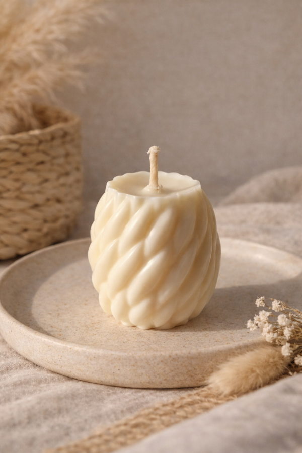 Ręcznie wykonana świeca z naturalnego wosku sojowego w 100% i bawełnianego knota. Świeca ma kremowy kolor i jest idealnym dodatkiem do każdego wnętrza. Świeca jest nowa i gotowa do użycia. Cena za szt. : 20zł. Wymiary: sznur: 6x6 cm Istnieje możliwość: - zamówienia większej ilości, - wyboru wosku (sojowy, sojowo-kokosowy, pszczeli) - wyboru koloru - zapachu
