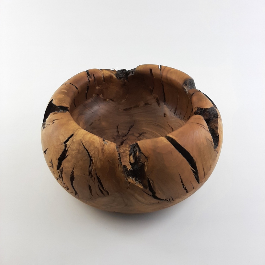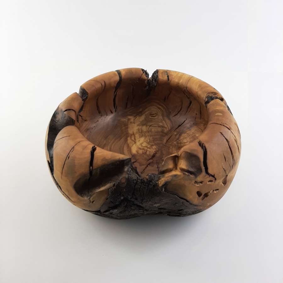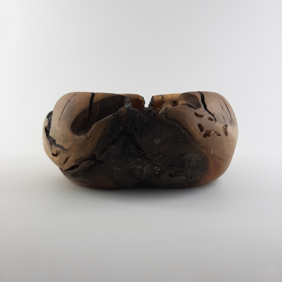 Serce Jabłoni – Unikatowa misa z korzenia Przedstawiamy przedmiot, którego projektantem była sama natura. Ta dekoracyjna miseczka powstała z misternie uformowanego korzenia jabłoni. Jej autentyczny charakter definiują naturalne pęknięcia i otwory, które opowiadają historię drzewa, z którego pochodzi. Niezwykłe przebarwienia i bogate usłojenie sprawiają, że miseczka przyciąga wzrok, stając się centralnym punktem salonu lub stylowym akcentem na biurku. To rzemiosło w duchu wabi-sabi – celebrujące niedoskonałość i upływ czasu.