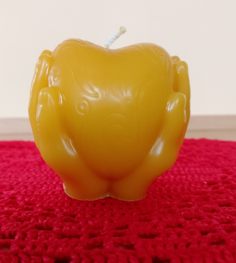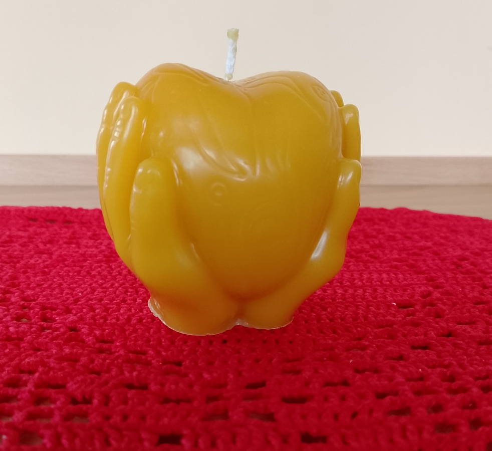 Świeca wykonana ręcznie z prawdziwego (niefałszowanego) wosku pszczelego. Wosk pochodzi z naszej przydomowej pasieki. Wymiary: wysokość ok. 8 cm, szerokość 8 x 6 cm, waga ok 180 g, knot bawełniany. Pali się wolno i spokojnie. Świece z wosku pszczelego nie posiadają żadnych z wad świec parafinowych. Jest wręcz odwrotnie - oczyszczają powietrze, likwidują nieprzyjemne zapachy, działają kojąco i relaksująco, wprowadzając nastrój ciepła i spokoju. Neutralizują zapach dymu tytoniowego. Wydzielane z płomienia świecy woskowej ujemne jony oczyszczają powietrze łagodząc dolegliwości nieżytu górnych dróg oddechowych, chorób płuc, astmy, alergii, kataru. Wosk pszczeli jest naturalną wydzieliną pszczół służącą do budowy plastrów, w których wychowywane są młode pszczoły, oraz składowany jest miód i pierzga. Coraz większe jest grono osób doceniających zdrowotne właściwości wosku pszczelego uwalniane podczas spalania świec woskowych. Wartość wydobywających się ze świec woskowych cennych składników leczniczych jest nie do przecenienia. Pełne miodowego aromatu pomieszczenie, nasycone jest ujemnymi jonami, które są bardzo potrzebne w dobie komputerów i coraz większego zanieczyszczenia środowiska. Powstały w pomieszczeniu mikroklimat wywołuje w osobach przebywających w jego zasięgu przypływ optymizmu, energii i zdrowia. Doskonała na prezent dla wyjątkowej osoby. Gotowa do wysyłki. Możliwość zakupu większej ilości sztuk.