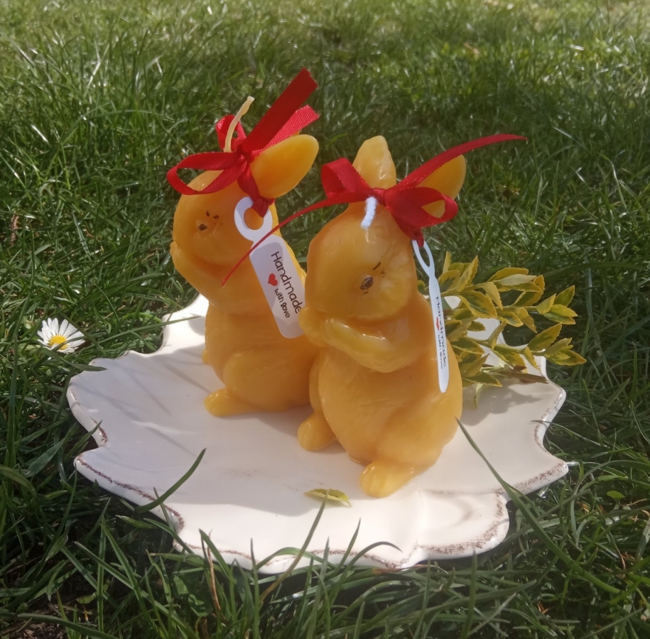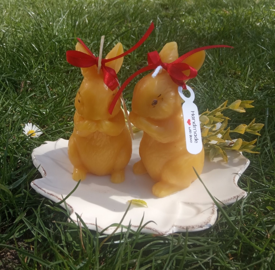 Wielkanocna świeca wykonana ręcznie z prawdziwego (niefałszowanego) wosku pszczelego. Wosk pochodzi z naszej przydomowej pasieki. Wymiary: wysokość ok. 11 cm, szerokość 7 cm, pali się wolno i spokojnie. Świece z wosku pszczelego nie posiadają żadnych z wad świec parafinowych. Jest wręcz odwrotnie - oczyszczają powietrze, likwidują nieprzyjemne zapachy, działają kojąco i relaksująco, wprowadzając nastrój ciepła i spokoju. Neutralizują zapach dymu tytoniowego. Wydzielane z płomienia świecy woskowej ujemne jony oczyszczają powietrze łagodząc dolegliwości nieżytu górnych dróg oddechowych, chorób płuc, astmy, alergii, kataru. Wosk pszczeli jest naturalną wydzieliną pszczół służącą do budowy plastrów, w których wychowywane są młode pszczoły, oraz składowany jest miód i pierzga. Coraz większe jest grono osób doceniających zdrowotne właściwości wosku pszczelego uwalniane podczas spalania świec woskowych. Wartość wydobywających się ze świec woskowych cennych składników leczniczych jest nie do przecenienia. Pełne miodowego aromatu pomieszczenie, nasycone jest ujemnymi jonami, które są bardzo potrzebne w dobie komputerów i coraz większego zanieczyszczenia środowiska. Powstały w pomieszczeniu mikroklimat wywołuje w osobach przebywających w jego zasięgu przypływ optymizmu, energii i zdrowia. Doskonałe na prezent dla wyjątkowej osoby. Gotowe do wysyłki. Możliwość zakupu większego kompletu.