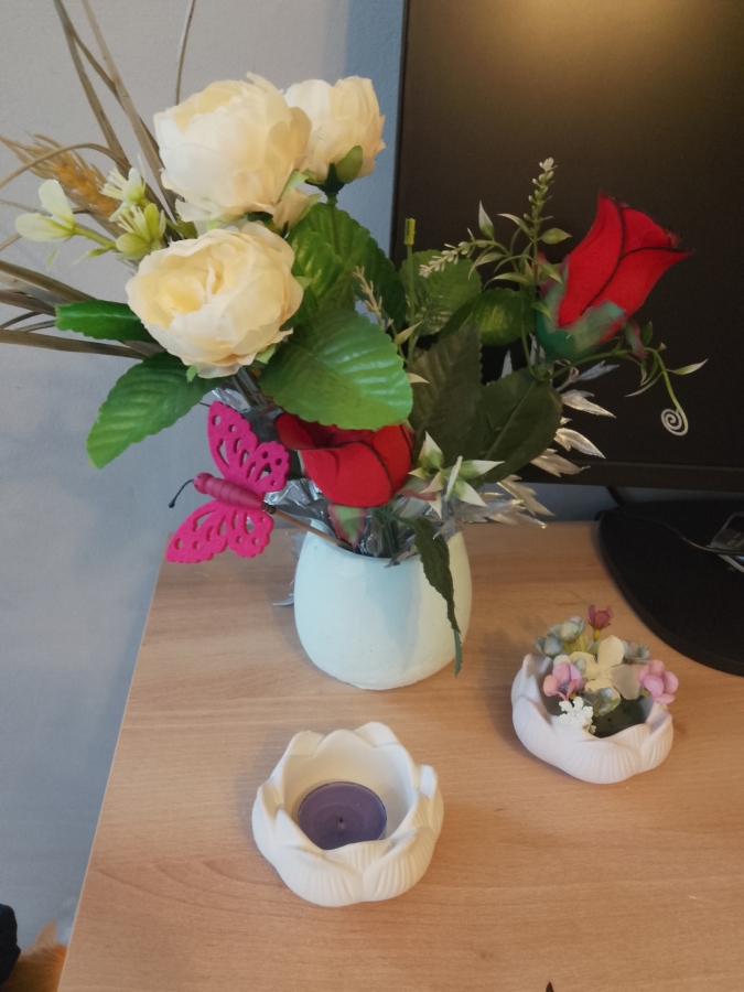 Tak jak wszystkie wyroby świecznik wykonany jest z gipsu ceramicznego służyć może jako ozdoba po dodaniu kwiatków świeczek bardzo jest twórczym wyrobem dostępny w kolorze fioletowym białym i zielonym