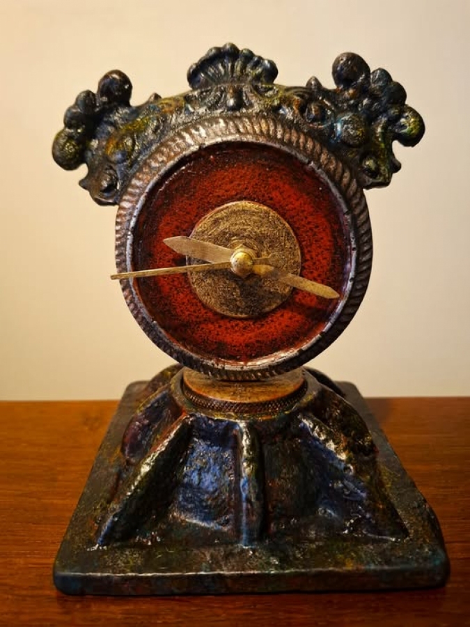 Loftowy zegar w stylu industrialnym. Metal, patyna.