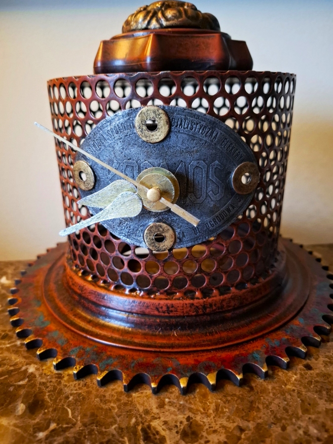 Zegar z surowców wtórnych. Metal, szkło.