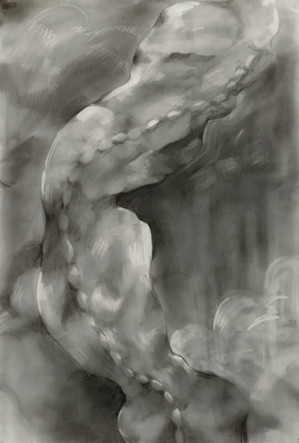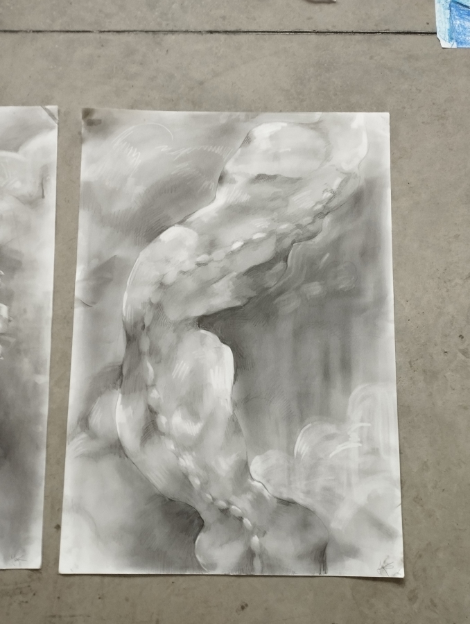 Impresja rysunkowa o zawiłościach kręgosłupa,