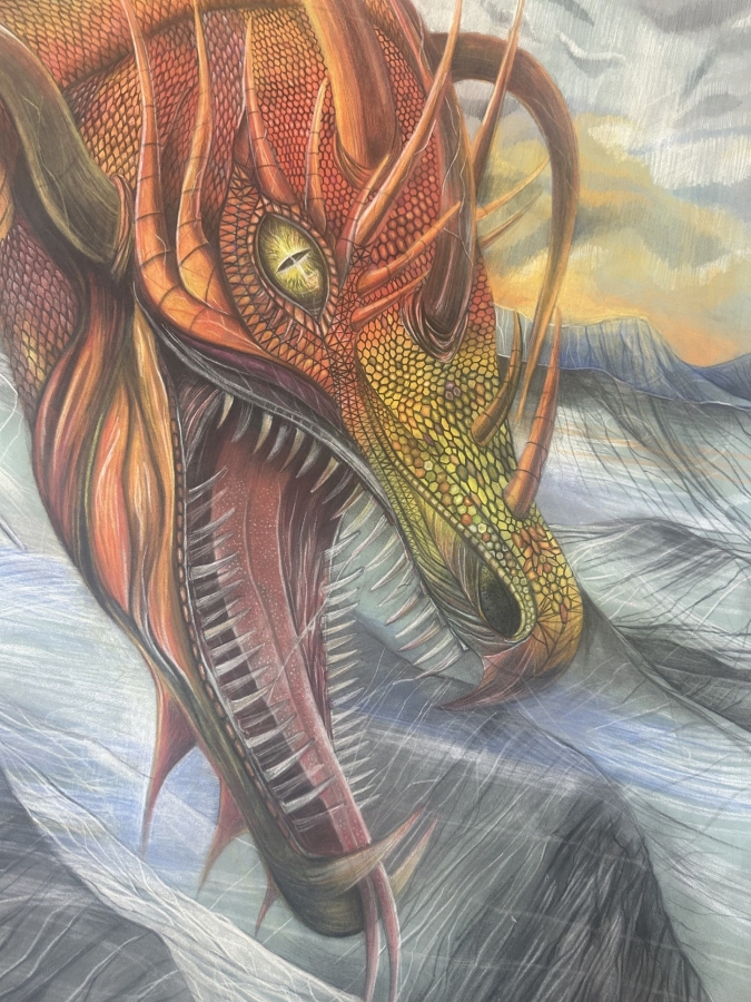 Praca jest częścią serii prac artysty przedstawiających smoki w różnych środowiskach, biomach i zalicza się do sztuki fantasy. Została wykonana najwyższej jakości kredkami na grubym papierze archiwalnej klasy. Doskonale zaprezentuje się zarówno w salonie, jak i pokoju dziecka.