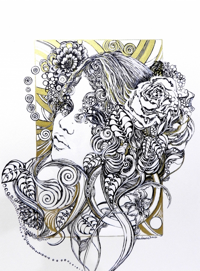 Sztuka Współczesnarysunek artystycznymalarstwo tuszowesztuka kobiecasecesjaZłotoObraz abstrakcyjnyAbstrakcjana prezentkobieta