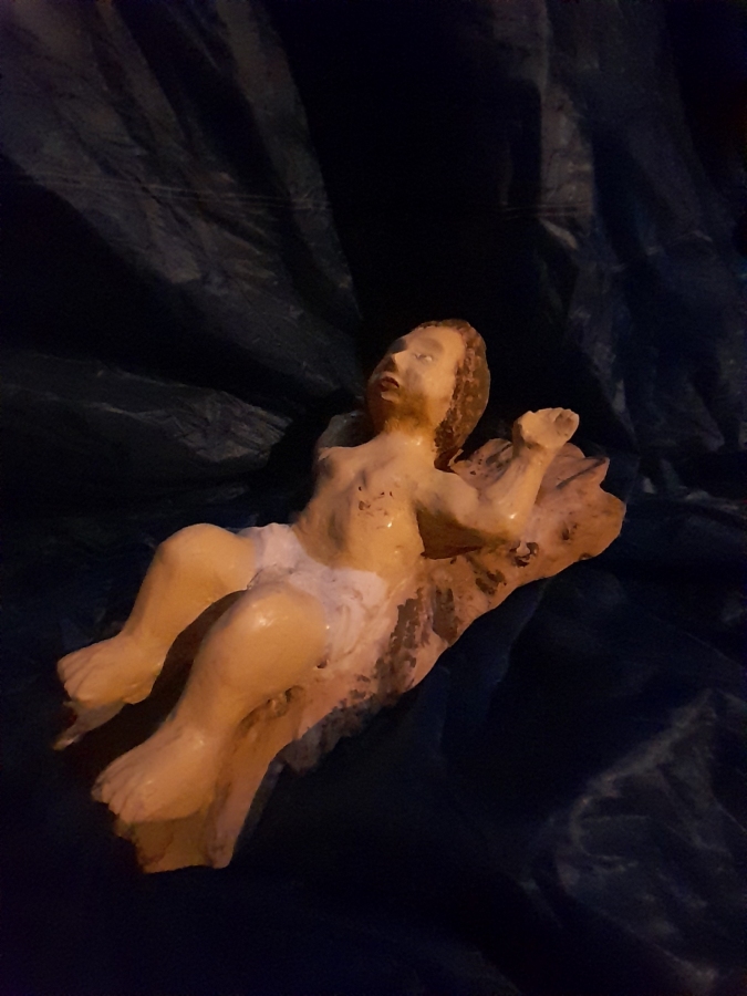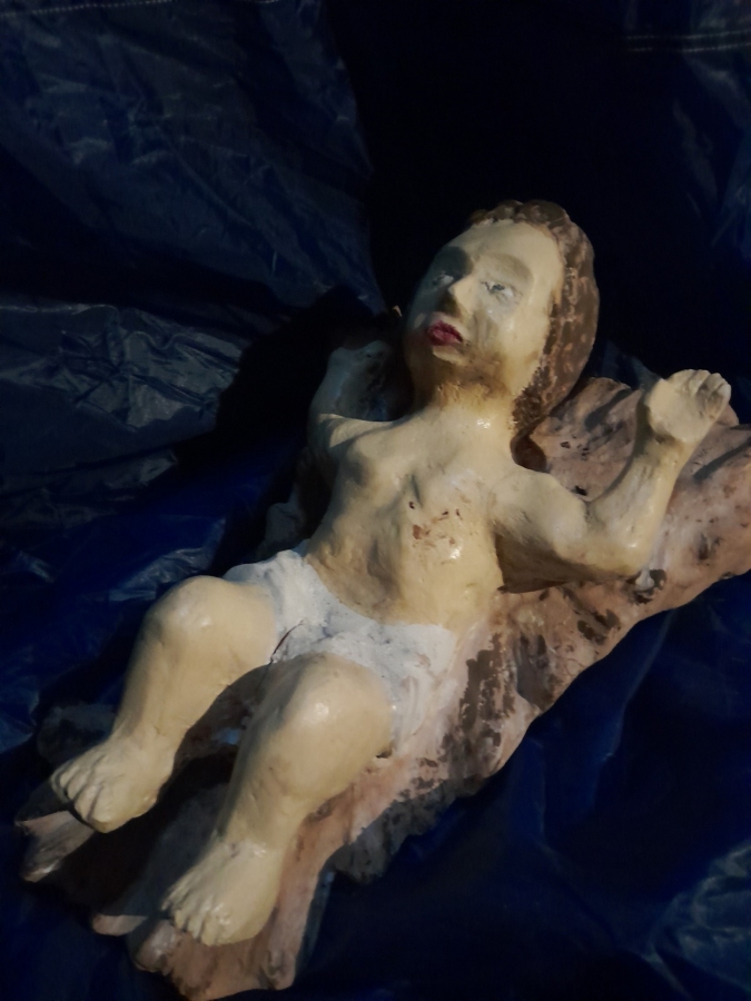 Rzeźba wykonana z drzewa lipy, przedstawiająca Dzieciątko Jezusa. Drewno malowane.