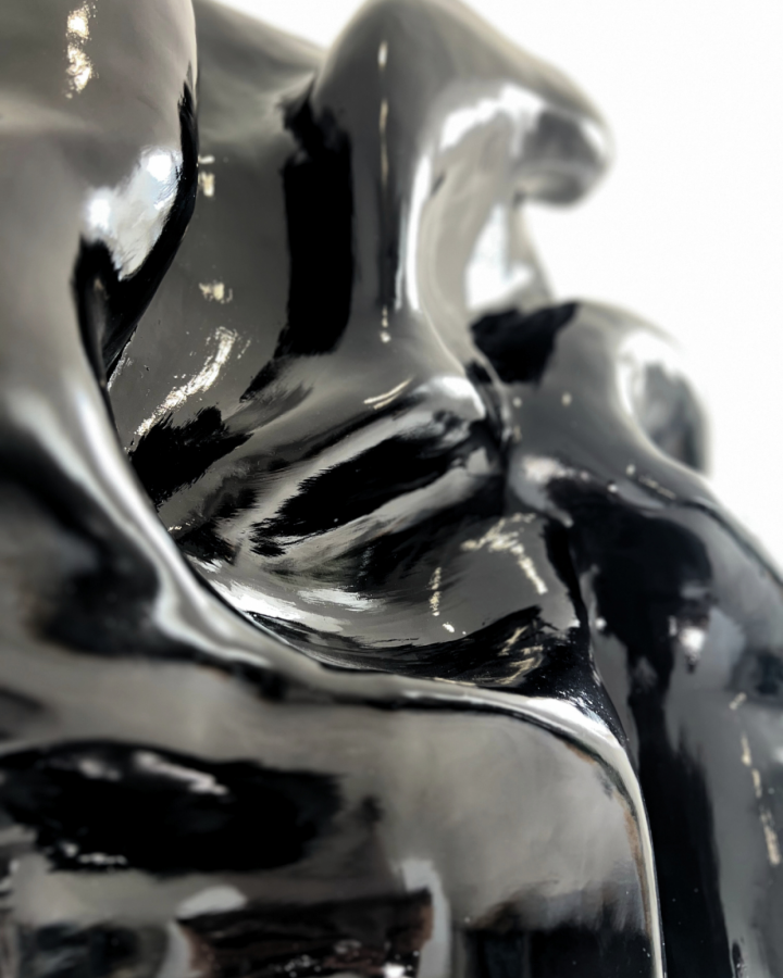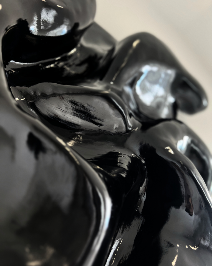 Fremdulo - rzeźba wykonana na ręcznie giętym stelażu ze stali nierdzewnej i pokryta autorską mieszanką gipsów, która cechuje się dużą wytrzymałością i jakością.