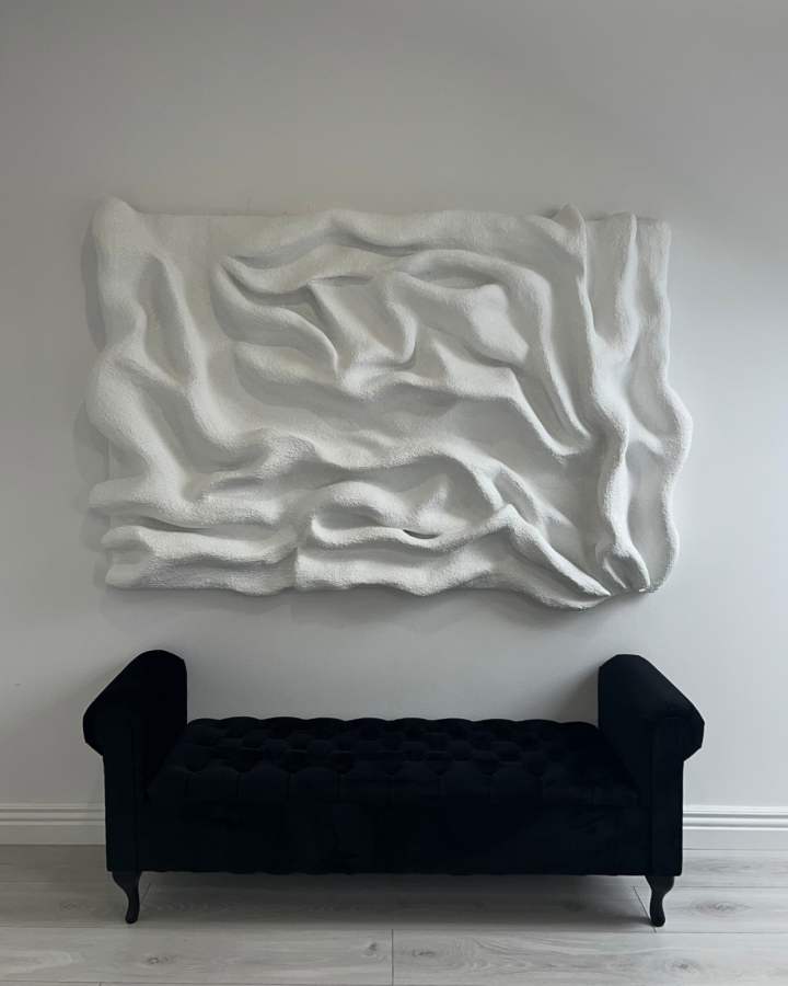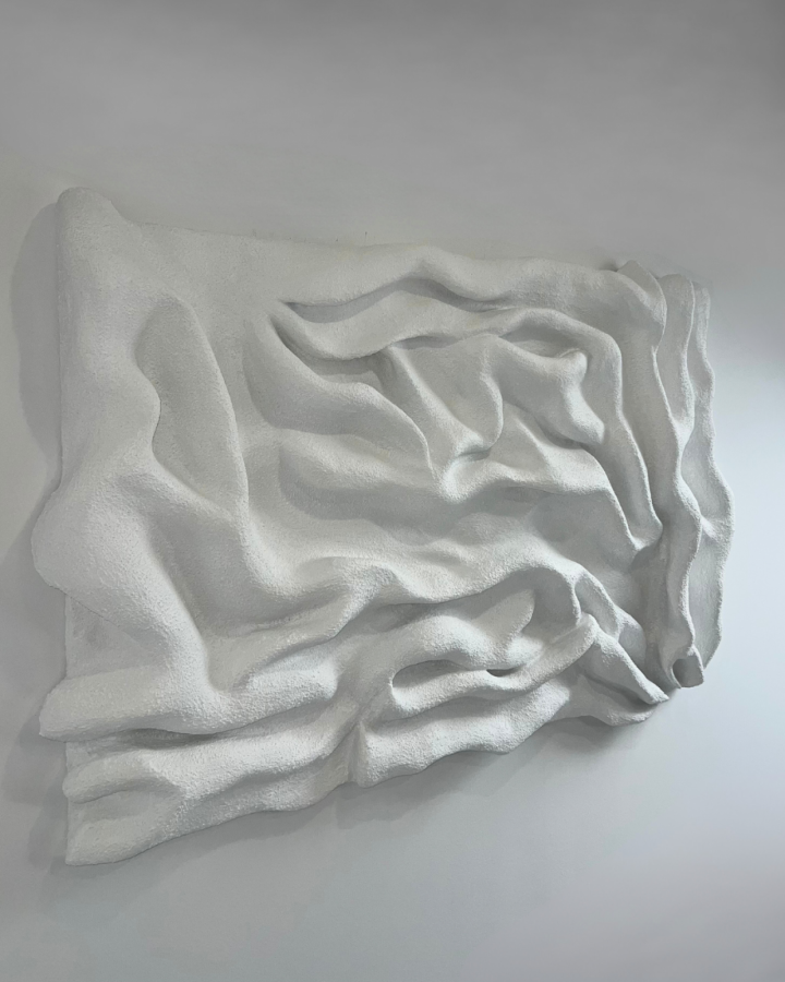 Survelas - rzeźba wykonana na ręcznie giętym stelażu ze stali nierdzewnej i pokryta autorską mieszanką gipsów, która cechuje się dużą wytrzymałością i jakością.