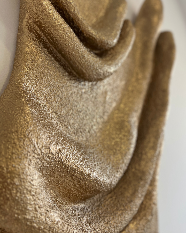 Tinsel - rzeźba wykonana na ręcznie giętym stelażu ze stali nierdzewnej i pokryta autorską mieszanką gipsów, która cechuje się dużą wytrzymałością i jakością.