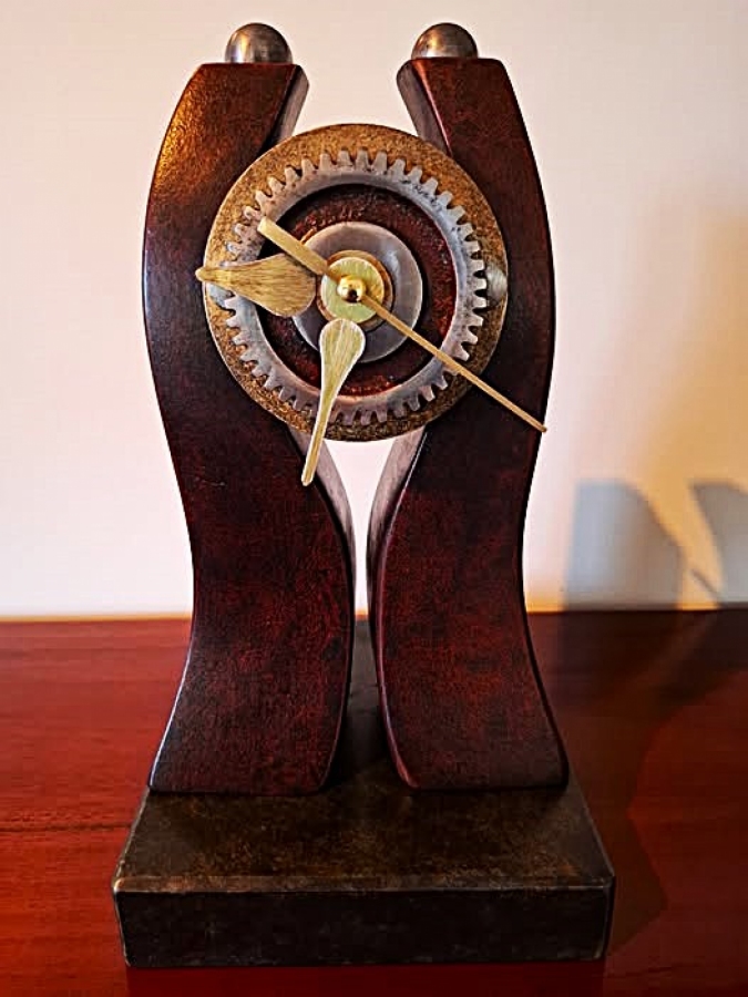 Zegar industrialny rzeźba. Idealny do dekoracji loftu. Drewno, marmur, metal. Patynowany na gorąco, akrylowo.
